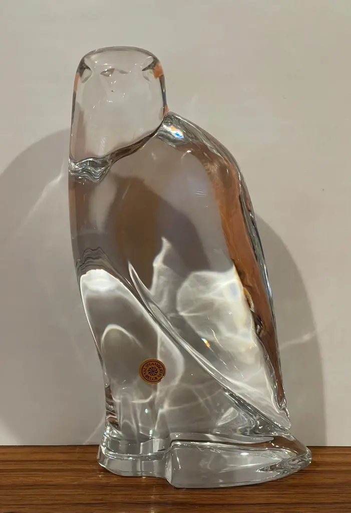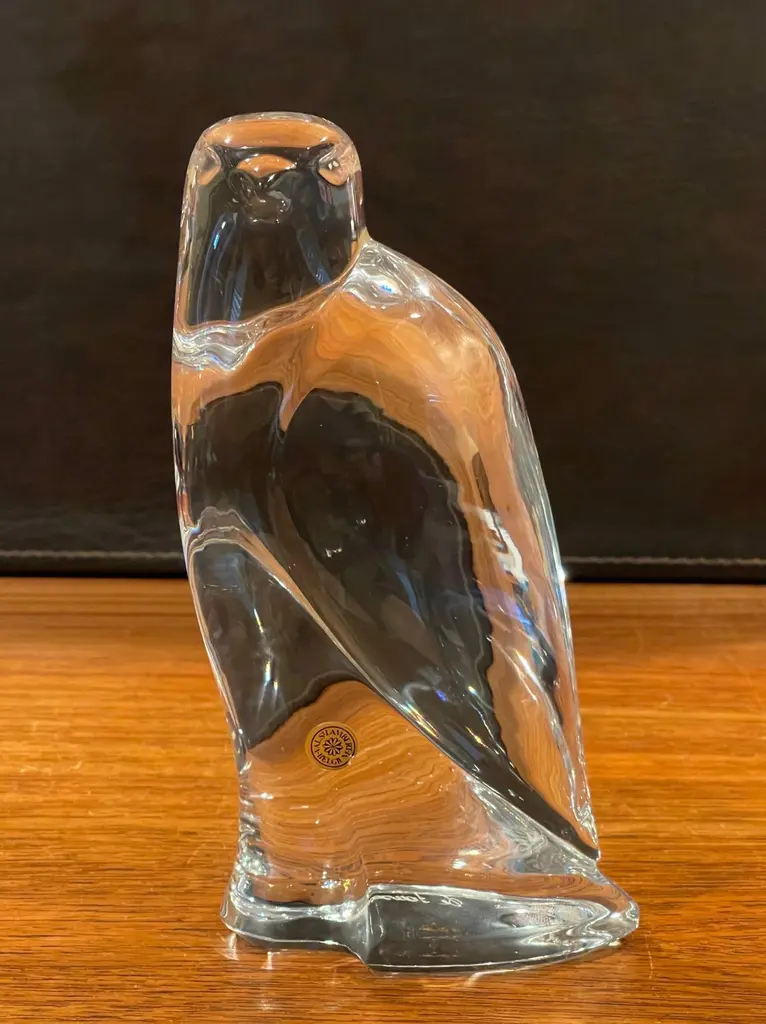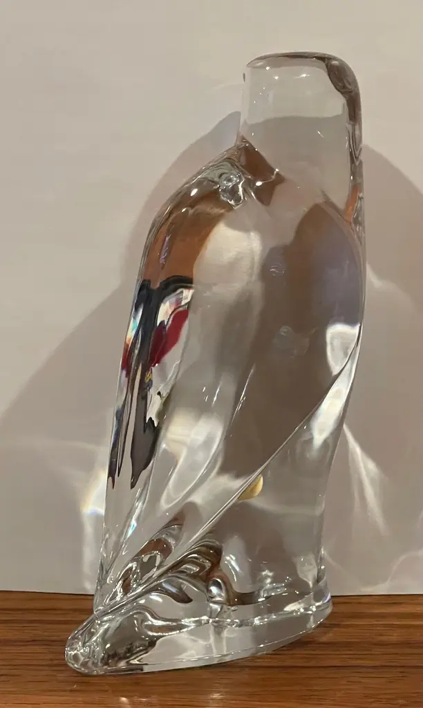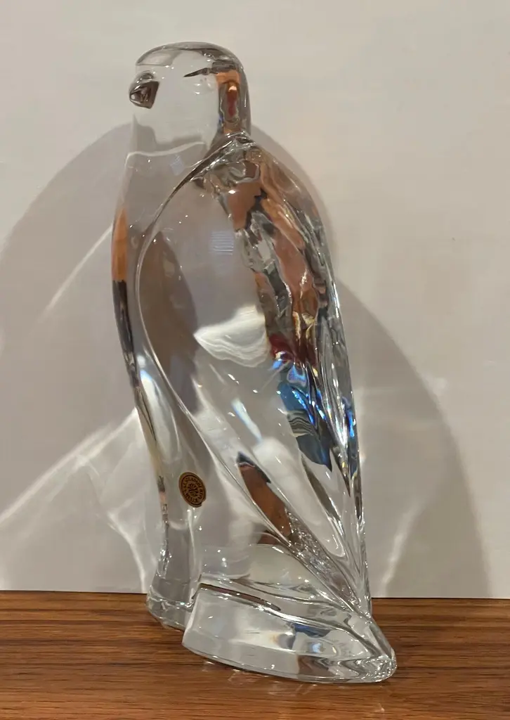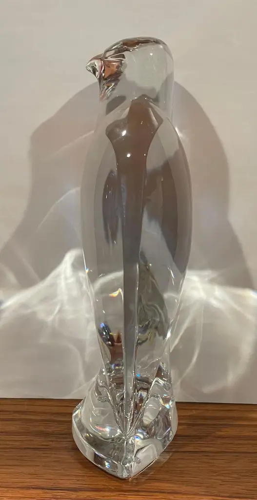 A beautiful crystal bald eagle sculpture by Val Saint Lambert of Belgium, circa 1970s. The piece is in very good vintage condition with no chips or cracks and measures 4"W x 2.25"D x 7.5"H. There are two eagles available. #2875.