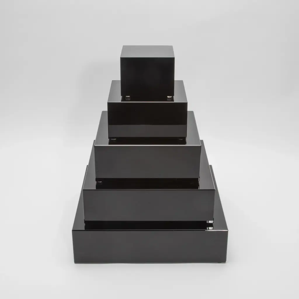 These opaque black crystal square bases, meticulously hand-crafted from the finest crystal glass, offer an exquisite foundation for showcasing art and sculptures. The rich, deep black opacity of the crystal exudes sophistication, providing a luxurious contrast that enhances the beauty of any piece displayed upon it. Each base is expertly shaped, with clean lines and a smooth finish, reflecting the precision of handcraftsmanship. The weight and solid feel of the crystal ensure both stability and an air of grandeur, making these bases not just functional, but also a statement of elegance and refinement in any curated space. Available sizes: 4 x 4 x 3” 6 x 6 x 3” 8 x 8 x 3” 10 x 10 x 3” 12 x 12 x 3”