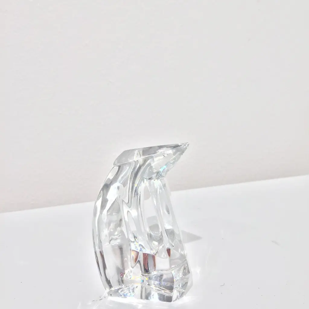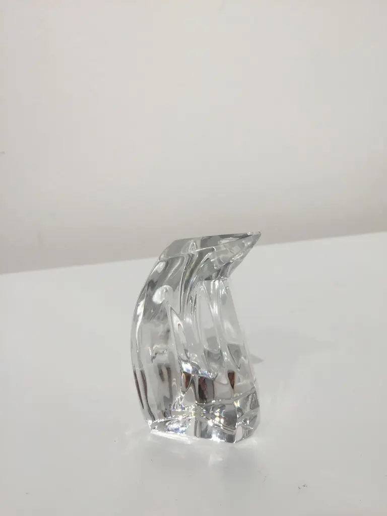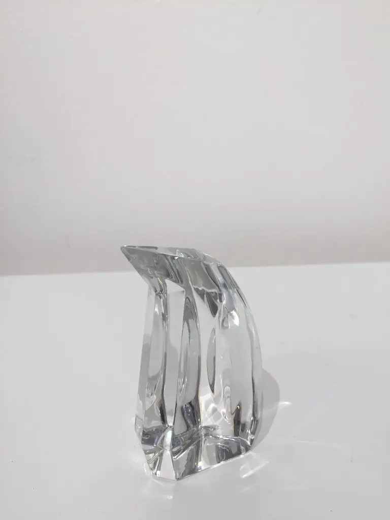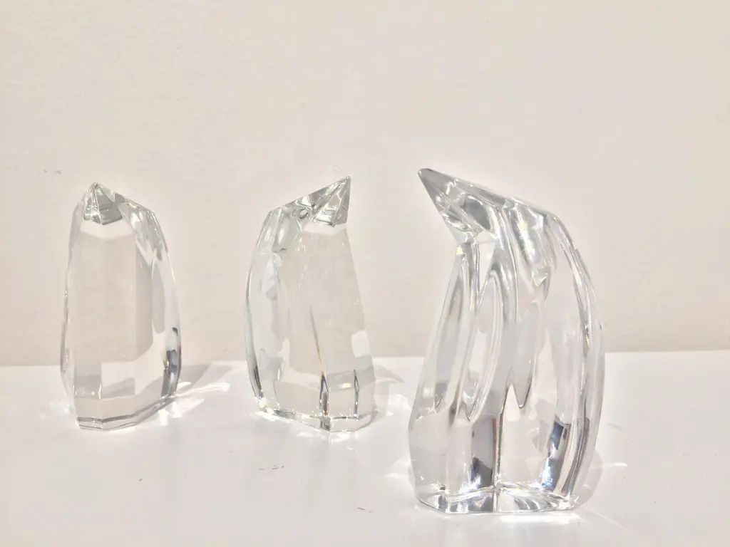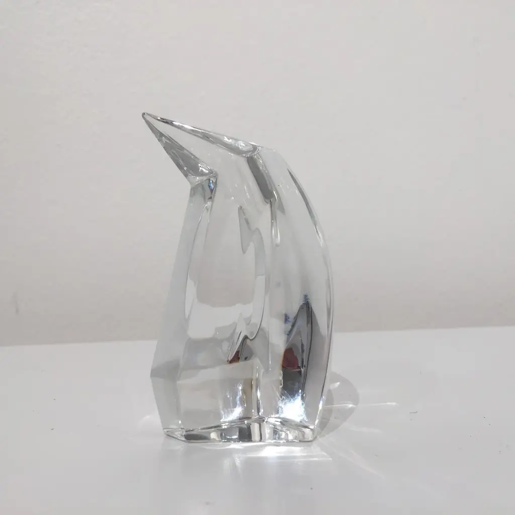 Petite faceted clear glass penguin produced exclusively for Danbury Mint by Val St. Lambert crystal factory. The set is in excellent condition and have a nice weight to them. Stamped on bottom.