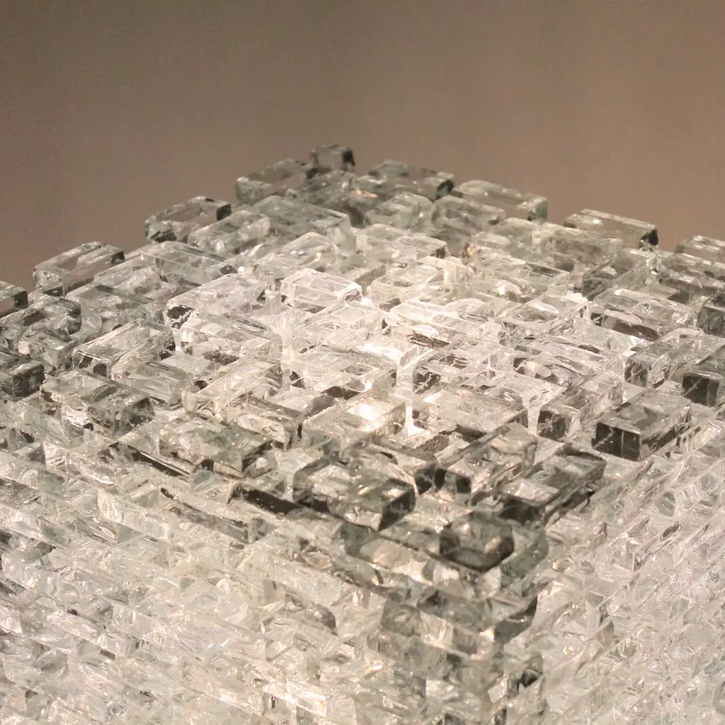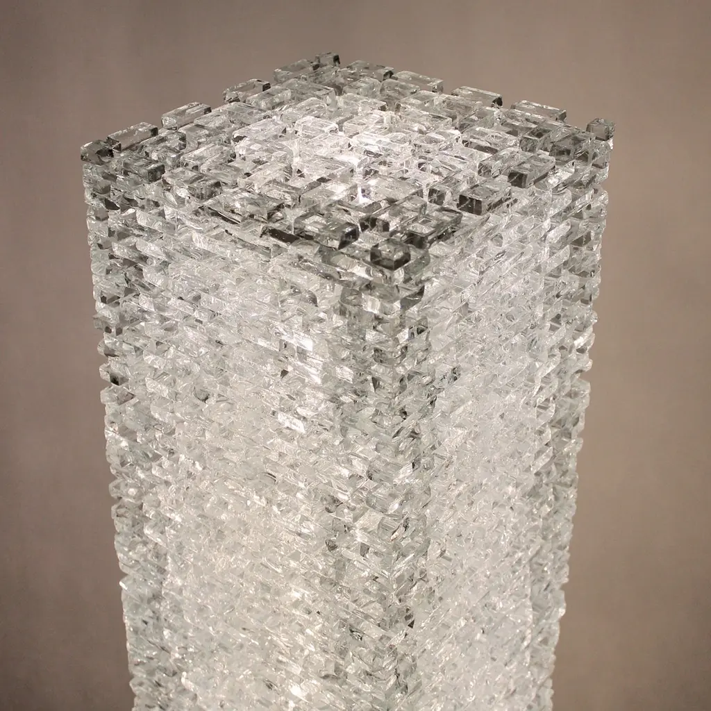 A stunning inspirational design to complement an opulent contemporary interior, this luminous sculpture by Gianfranco Coltella is a glass monolith composed of 12 blocks for easy assembly. Creating extraordinary interplays of light and reflections, this piece will be an iconic and bold statement in a living room decor.