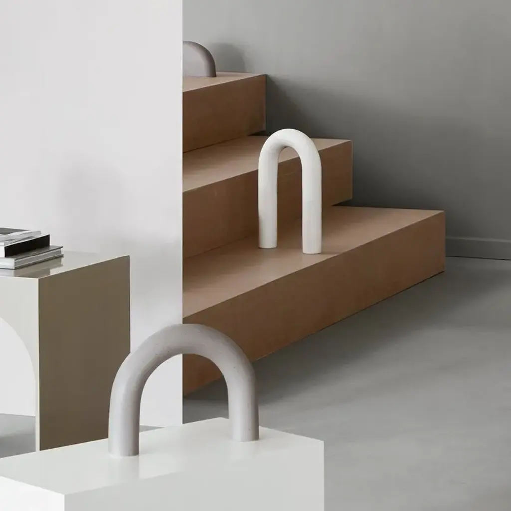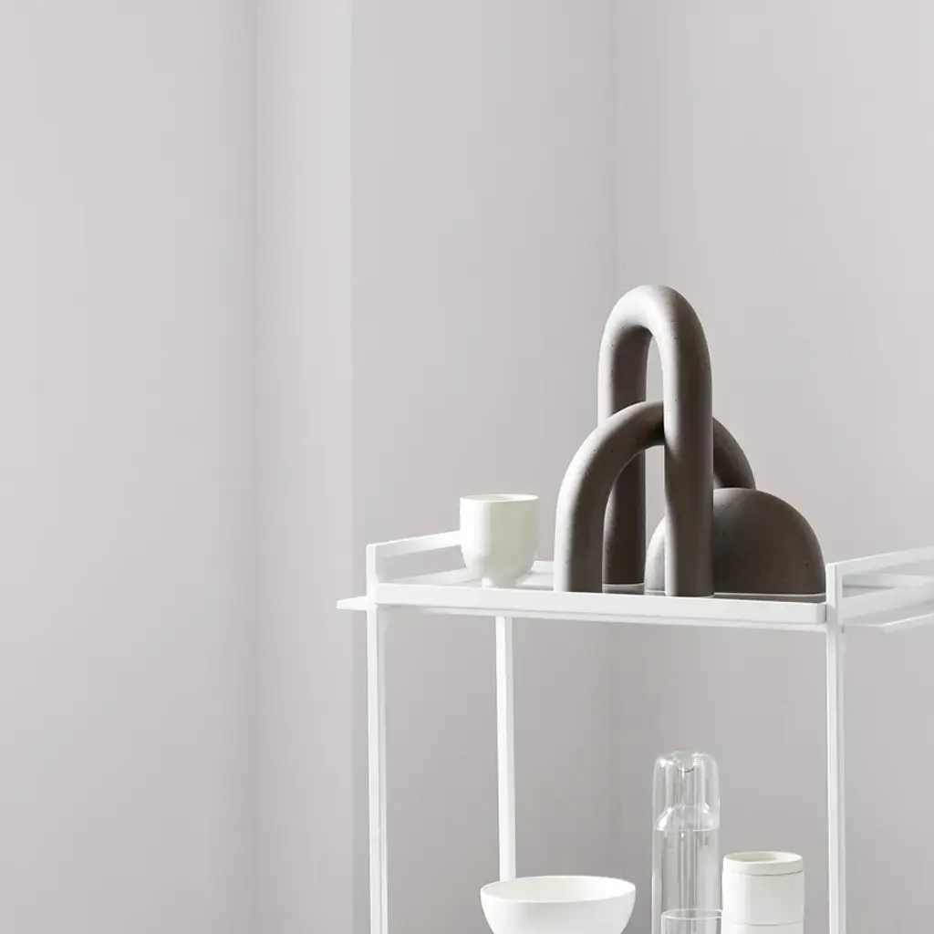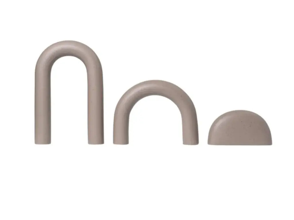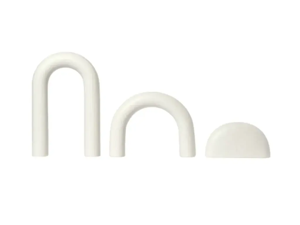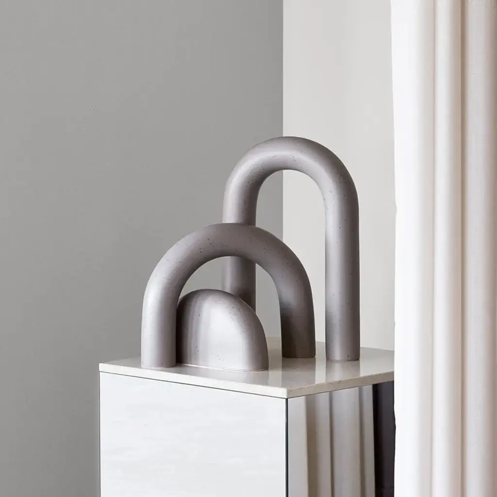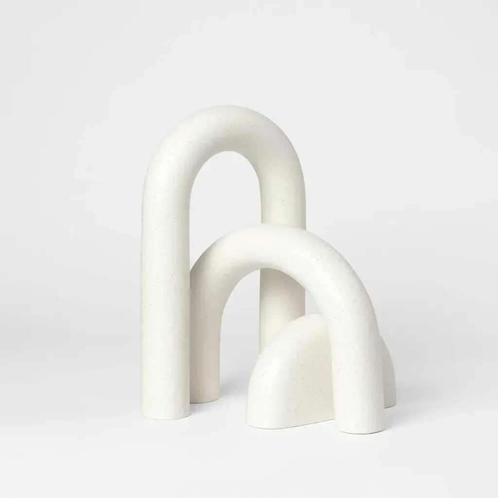 Inspired by the architectural design aesthetic of arches and pillars. Emanating from one starting point, the Cupola Sculptures design is based on the idea of one single unbroken movement, which gives the illusion of an infinite organic sculpture especially when all three parts of the sculpture are placed close together.Material Earthware with Glacing