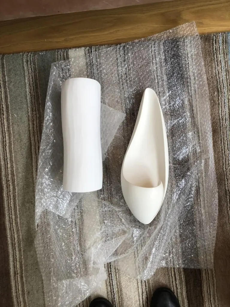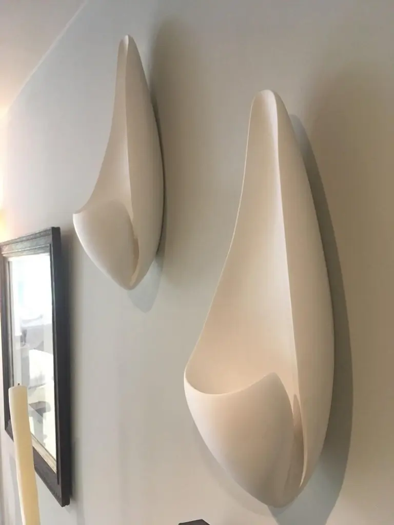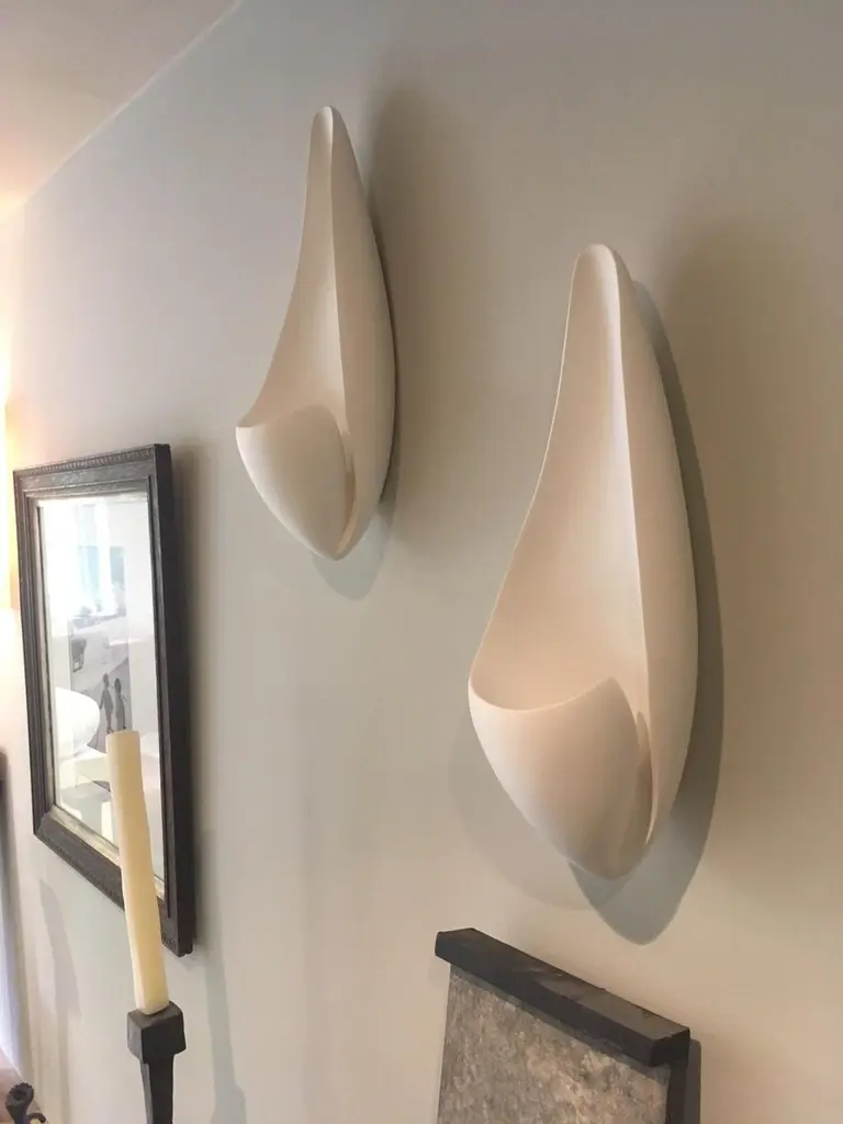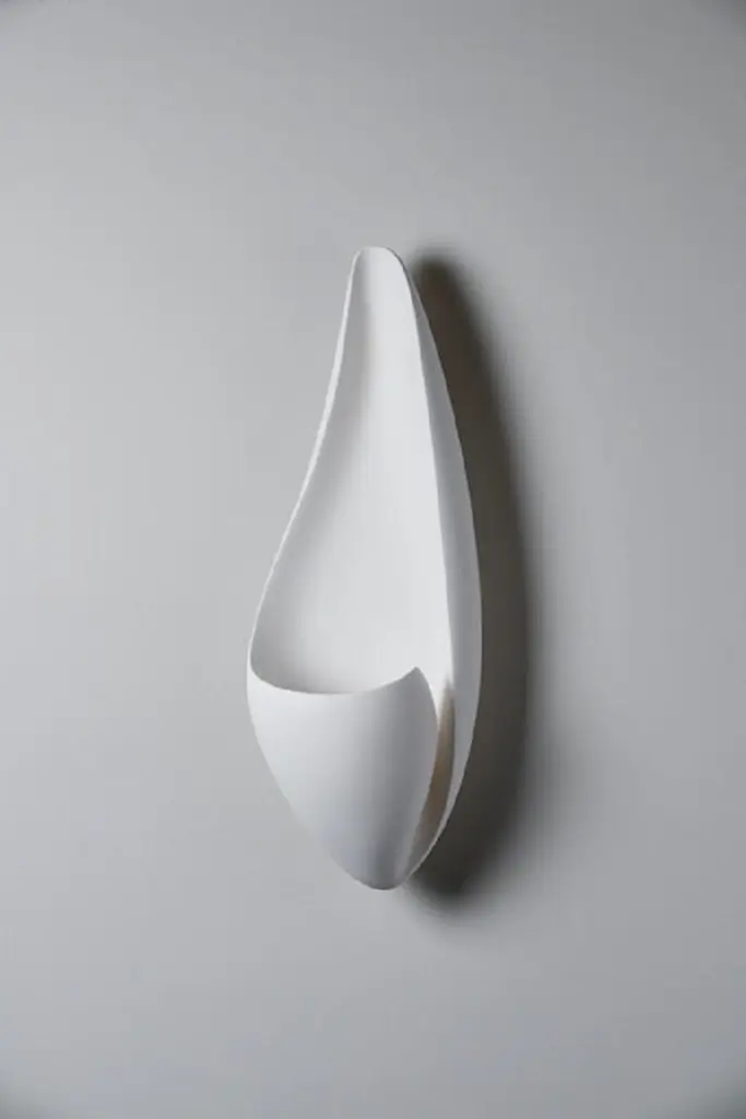Handmade Curl wall-mounted sculpture, in silky smooth white plaster, created by artist Hannah Woodhouse in her London studio. Contemporary design inspired by nature and midcentury European sculpture. Height 15.7" (40 cm). All our plaster wall-mounted sculptures can be custom colored to color of your choice if you supply paint color reference (for an additional charge quoted on an individual order basis). If you do not request color service, the sculptures are shipped in our trademark calm white color.We run plaster casting workshops in our London studio, during which participants can cast maquettes (small artist models) of our original designs, including shell, tulip and ovoid.Curl wall-mounted sculpture Hannah Woodhouse/2006 (date of design).