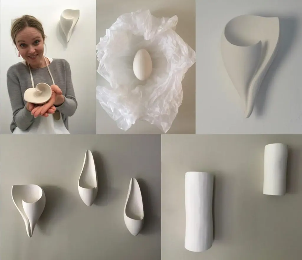 Curl Contemporary Wall-Mounted Sculpture In White Plaster, Hannah Woodhouse