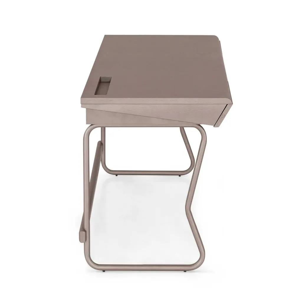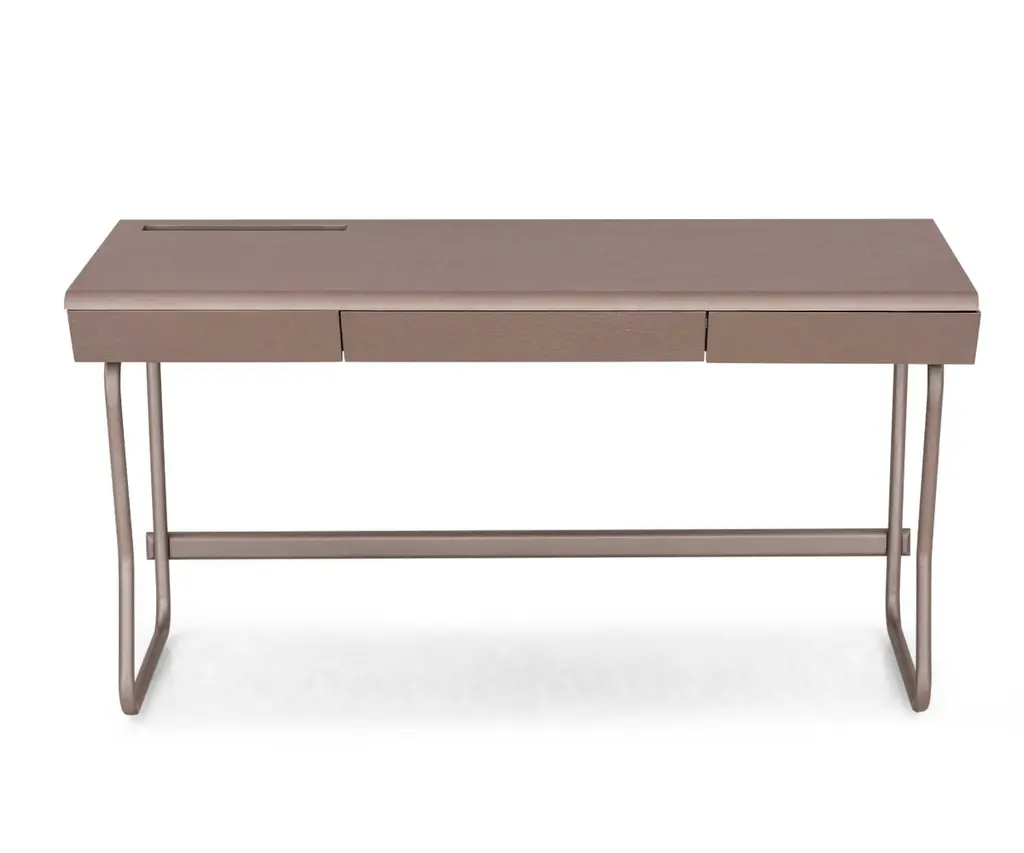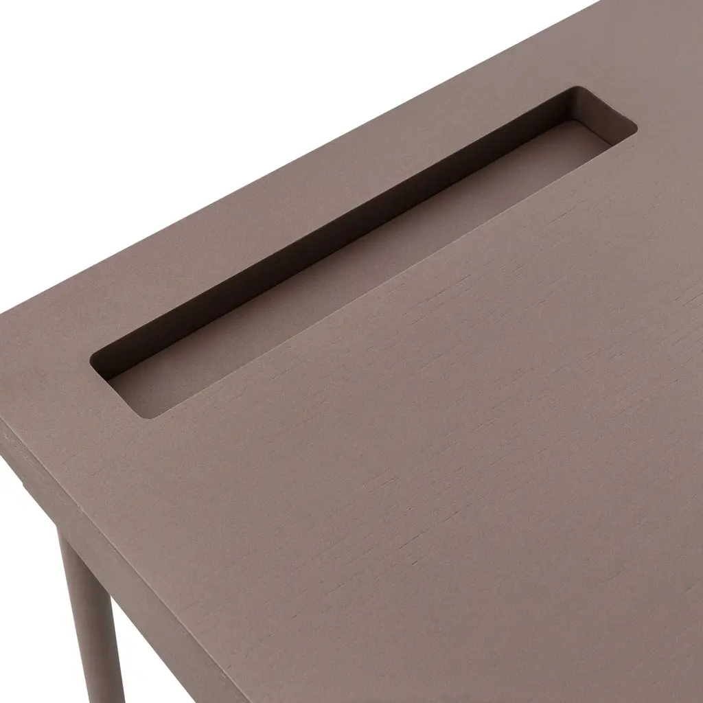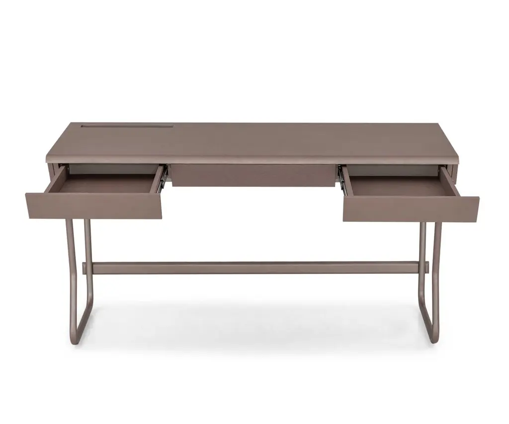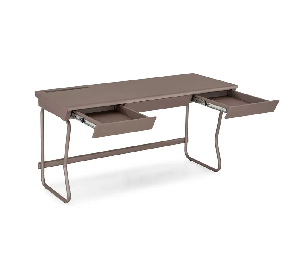 A Class desk designed by Uultis Studio in Chocolate oak with chocolate metallic base. The Class desk is a refined marriage of functionality and elegance, featuring a chocolate oak veneer top paired with a sleek chocolate metallic base. Designed for both practicality and aesthetic appeal, this desk offers a contemporary design inspired by the simplicity and structure of classic school desks. Its clean lines and rich finishes make it a standout addition to any home office, study, or workspace.The desk includes two spacious drawers, providing convenient storage for your office essentials, from stationery to important documents. Its sturdy metallic frame supports a durable wood veneer surface, ensuring a robust and long-lasting piece. Perfectly suited for tasks ranging from computer work to creative projects, the Class desk brings an air of sophistication and productivity to any room.Crafted with sustainability in mind, the Class desk reflects a commitment to eco-friendly practices, utilizing responsibly sourced materials. Its timeless design blends seamlessly into modern or transitional interiors, enhancing your workspace's decor. While assembly is required, easy step-by-step instructions are included, making it easy to integrate this elegant desk into your home. The Class desk is a versatile and stylish solution for those seeking quality, functionality, and design excellence in their workspace furniture.