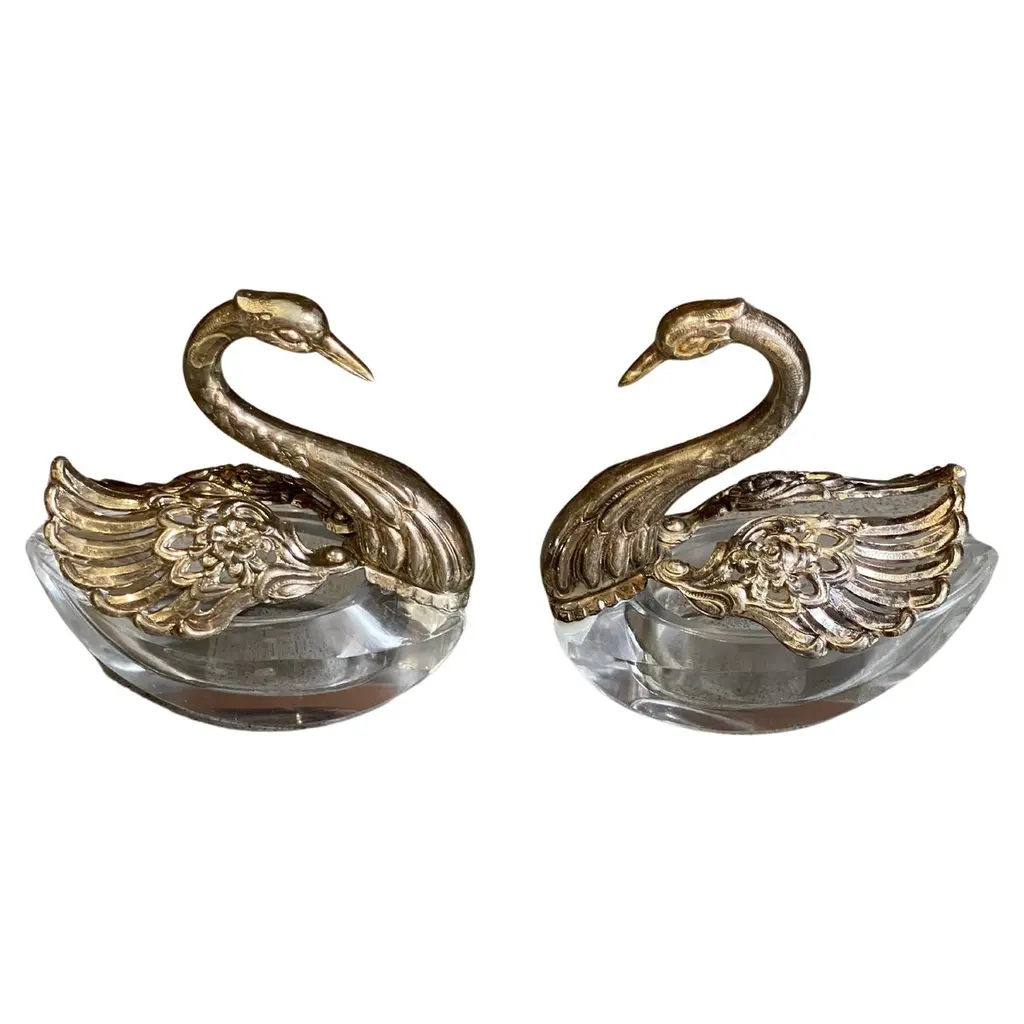 Masterfully handcrafted of Murano glass, this pair of white swans will be a classic addition to any mantle or bookcase in a living room or private study. The swan bodies are crafted of white glass with subtle fluting along the long necks and breast to mimic the texture of feathers, while the prominent beaks and eyes are made of clear glass. The purity of the glass heightens the bold character of this sculpture, making it the focal point of any decor.