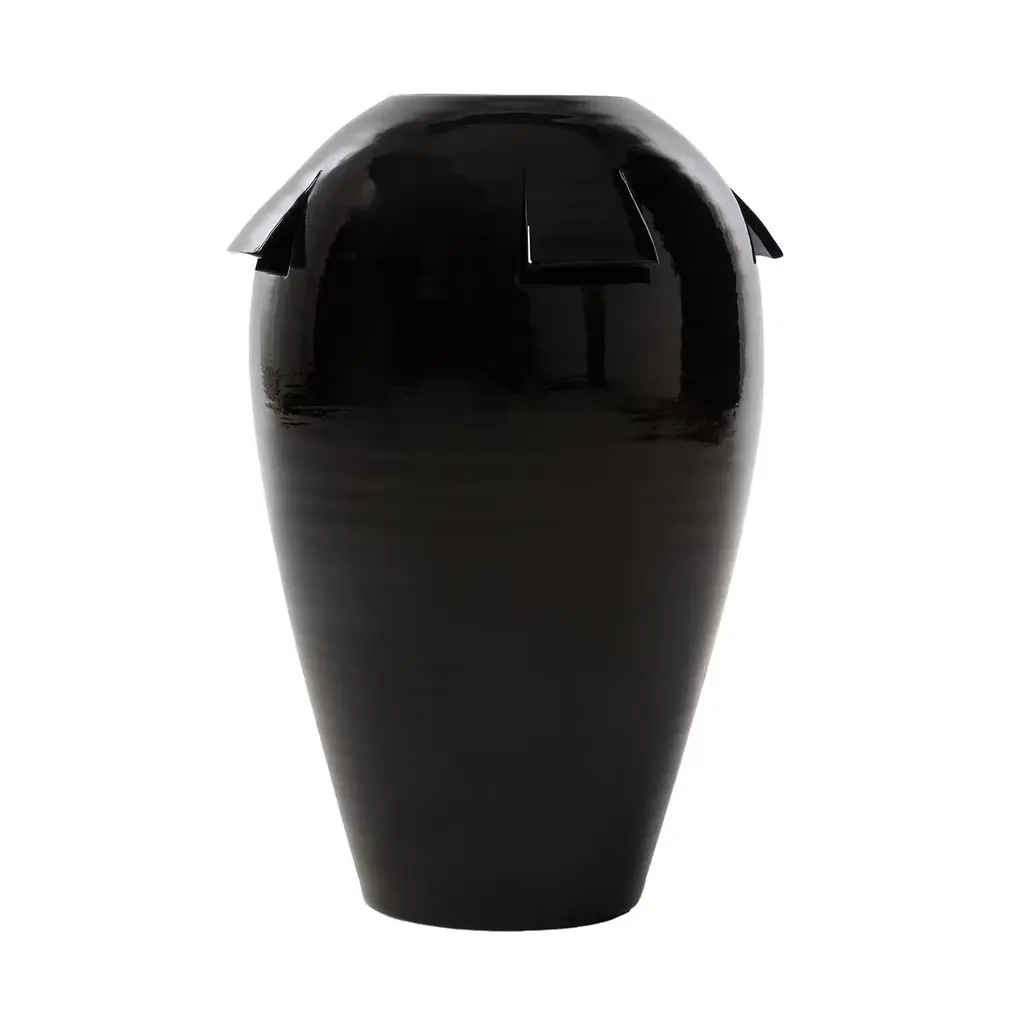 An intriguing intimate sphere where passion, freedom, and erotism freely combine is the one this anthropomorphic-style decorative vase seems to reveal to the observer who peeks through its fissure. Part of a series inspired by lovers who slowly open up to one another, the piece is here offered in an elegant total-black version but is also available in different colors. Also available in 60 cm and 90 cm versions. Contact the Concierge for more details.