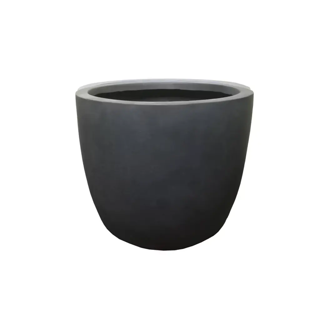 Dahlia Round Planter Pot, Fiberstone And Mgo Clay, Black, 10.8" H
