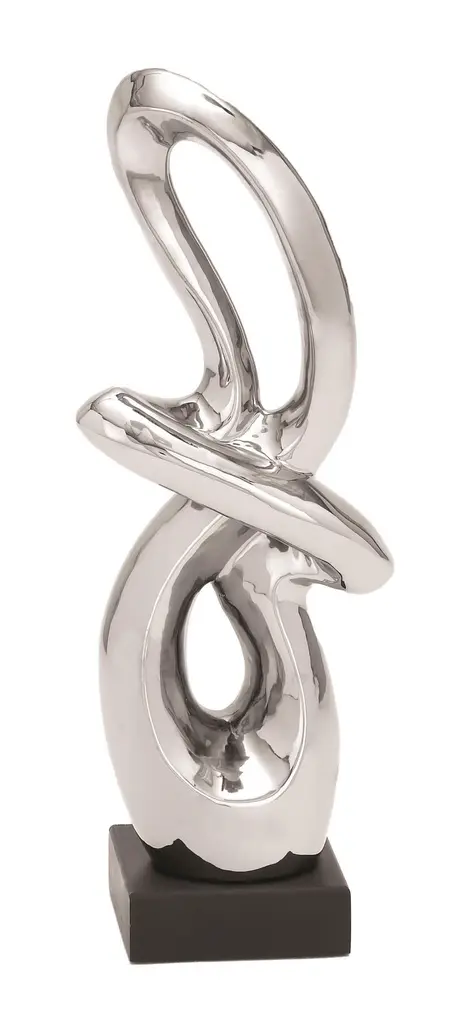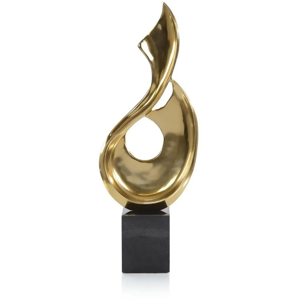 45.5"H X 20.5"W X 13"D The swirl design of these hammered brass and polished nickel metal strips creates a soft, yet elegant, sculpture that is set on a white marble base. Disclaimer: Due to the natural element of this item, variations in color will occur.