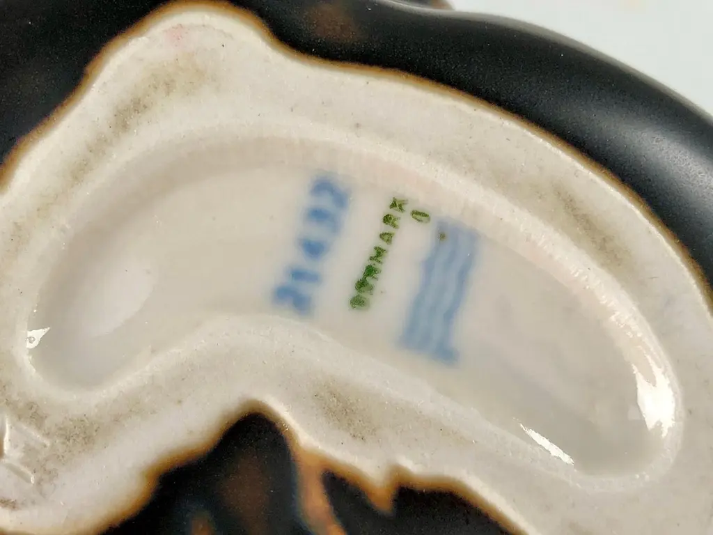 Danish Knud Kyhn bear figurine for Royal CopenhagenThe lively figurine of a playing baby bear was created by Knud Kyhn (1880-1969). Knud Kyhn worked for for Royal Copenhagen from 1903-1910, 1924-1932 and 1936-1967. During this period he created many figures of moving and playing animals.The bear sculpture is marked with model number 21432 and the 3 blue waves by Royal Copenhagens as evidence of top quality and is in excellent condition.