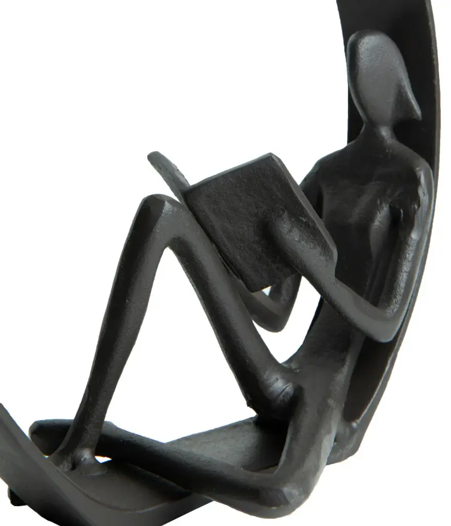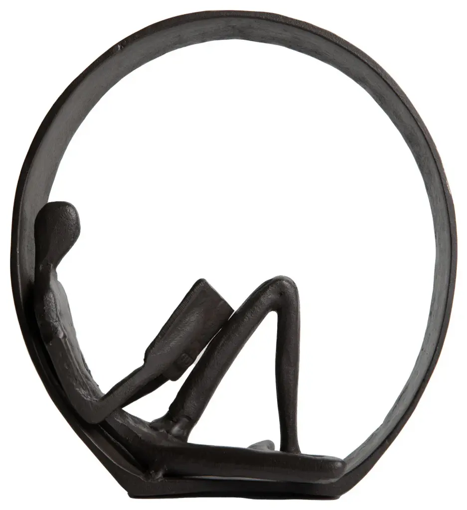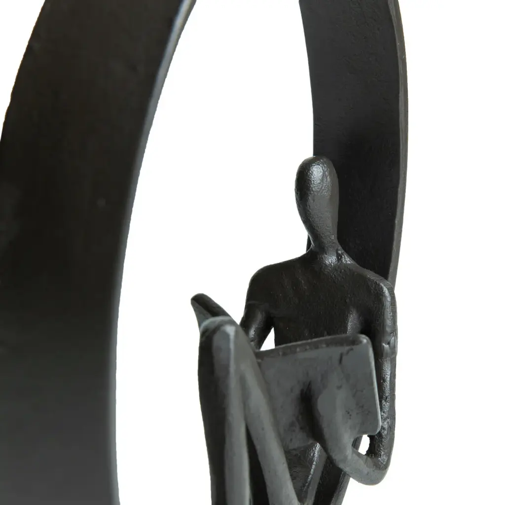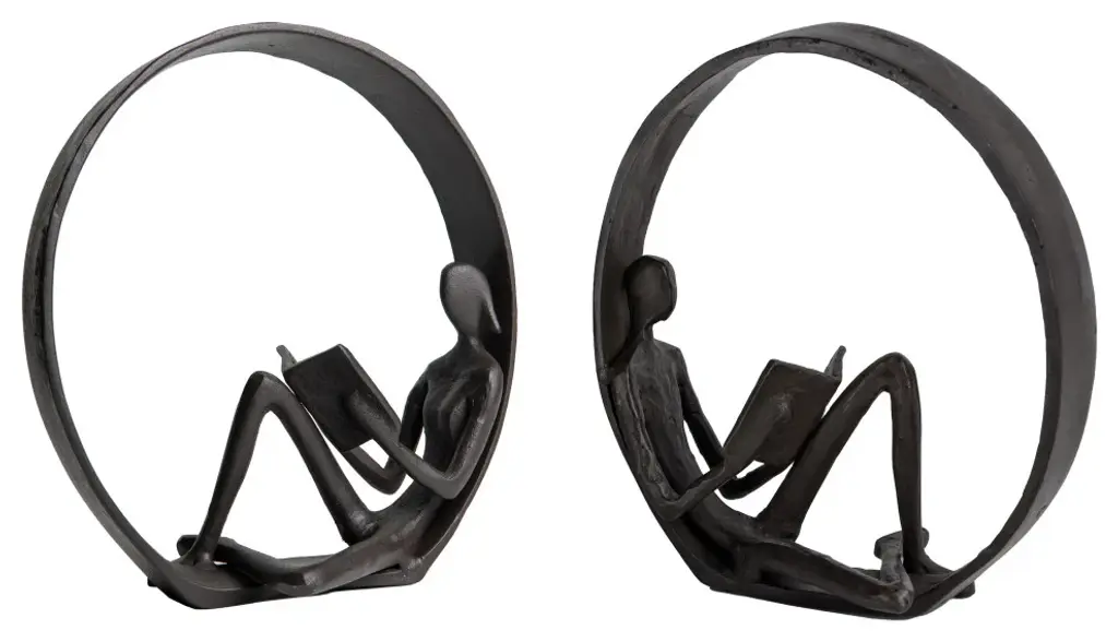 Danya B. Contemporary Encircled Reader Cast Iron Sculpture Statue, 2-Piece Set
