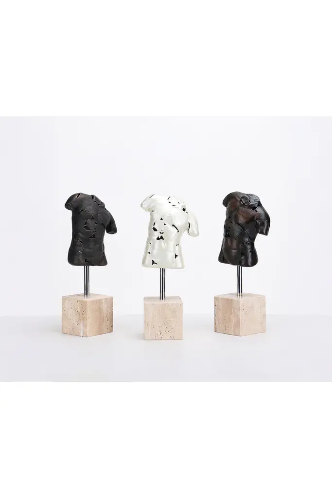 With its juxtaposition of dark bronze and beige marble, the Scarred Elegance Sculpture explores the beauty found in imperfection. Its organic design brings depth and character to any space, offering a unique blend of resilience and grace. Ideal for modern settings, it creates an elegant focal point in both homes and hospitality venues.