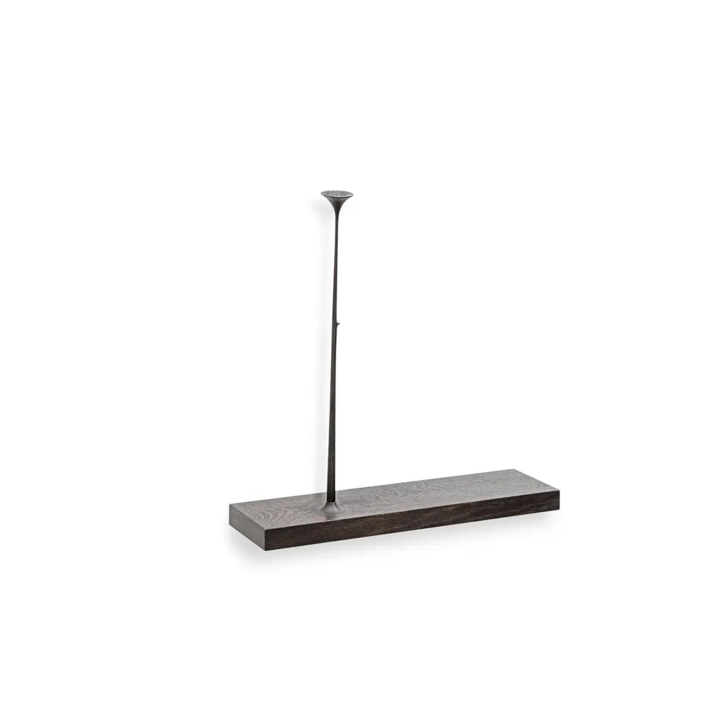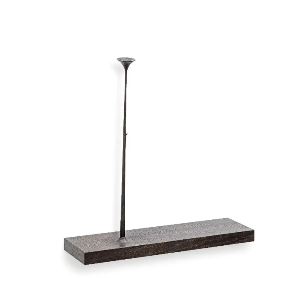 Dark Kukkii sculpture 1 flower by Antrei Hartikainen.Materials: Black stained oak, natural oil waxed walnut.Dimensions: W 75 / 60 / 40 cm, D 10 cm, H 34 / 42 cmAlso available: light color & different flower amounts, Kukkii (blooms) is a unique collection of slender-stemmed, wooden flowers and plants which, variously grouped, capture the moment of calm and freedom sometimes experienced in nature. The sculptural groups may be positioned on windowsill, or wall mounted as a floating shelf. The sculptures are handcrafted using a variety of techniques. Kukkii sculptures won Product of the Year 2017 award in MUOTO gala, a gala awarding the best Finnish design.Antrei Hartikainen is a master cabinetmaker and designer from finland known for his exquisite works in wood. The award- winning pieces, including functional products and pure art works, achieve heights of sensuality, elegance and craftsmanship. These important factors are emphasized in Antrei Hartikainen’s work, which constantly seeks to Challenge and blur the traditional categorizations between functional objects and visual arts. Hartikainen’s sculptural approach can be studied through his organic body of work, which simultaneously highlights the inspiration drawn from his material of choice, wood. Antrei hartikainen has shown his works in numerous solo and group exhibitions all over the world . Antrei have been awarded with prize as a Young Designer of the Year 2018 in Finland and shortlisted as Emerging Designer of the Year 2019 by Dezeen awards.