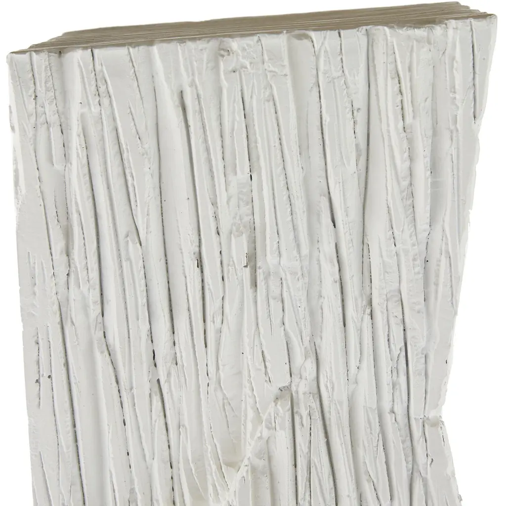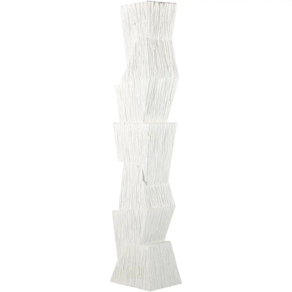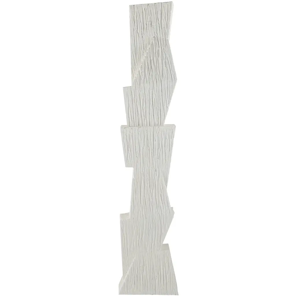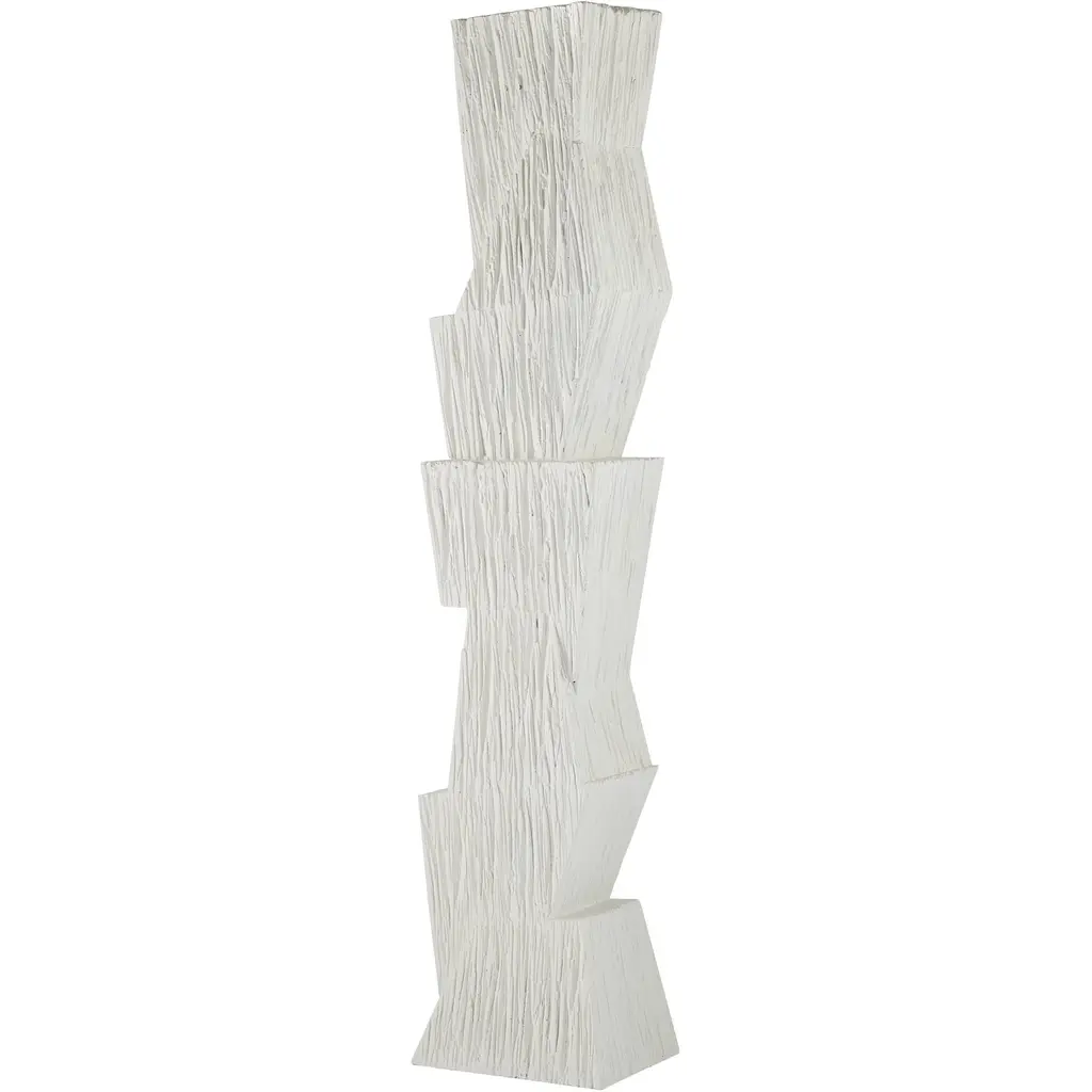 A Totem Of Matte White Resin Is A Commanding Accent Piece For Any Corner Of The Room. Designed To Draw The Eye To Its Geometric Form, A Faux Wood Finish Adds A Dynamic Accent To The Texture On Its Vertical Surface. Finish Will Vary.