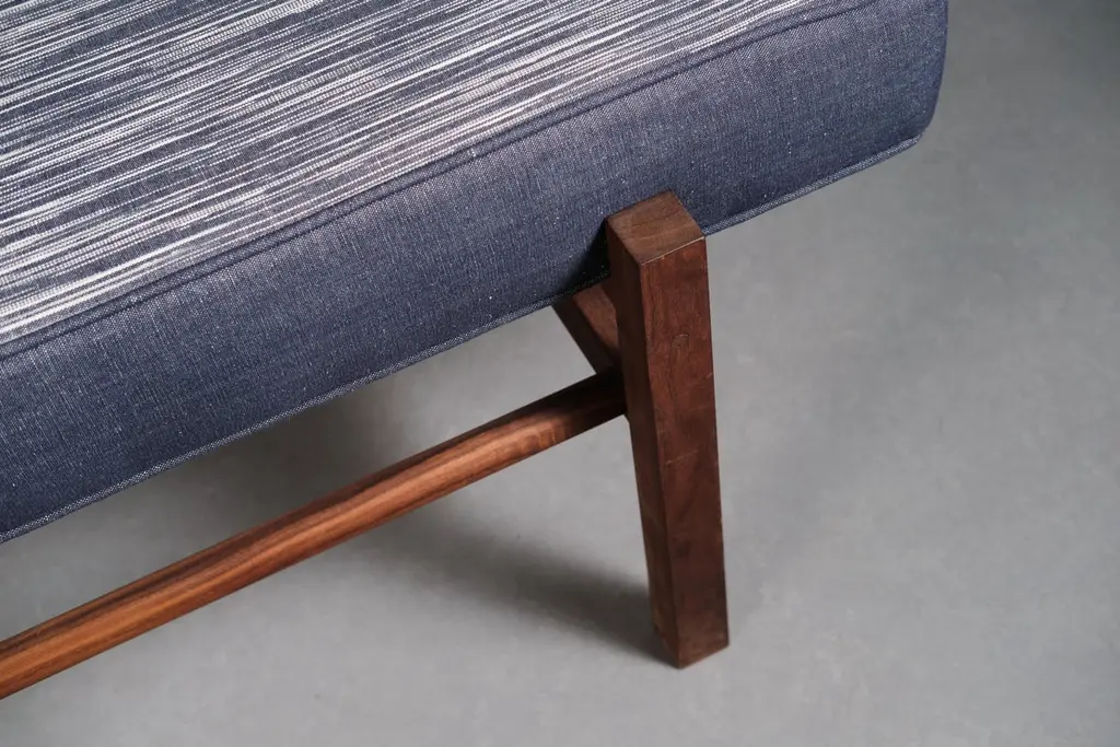 Daybed Handcrafted In Walnut Wood And Mallorcan Blue Textile By Nico Guevara