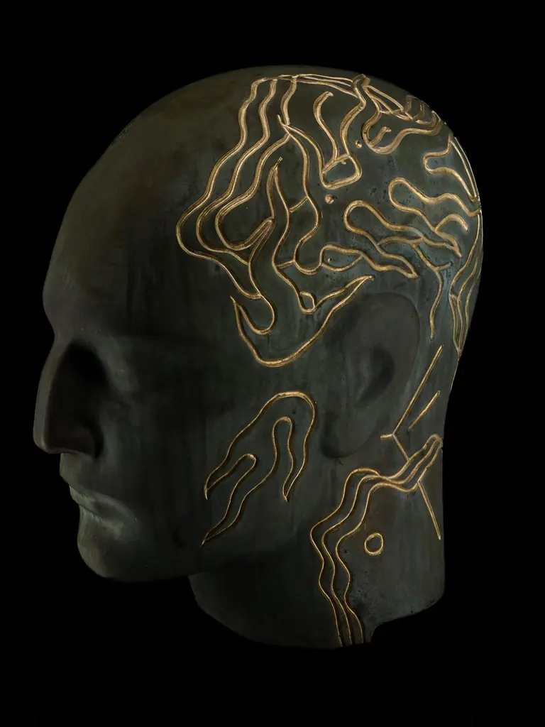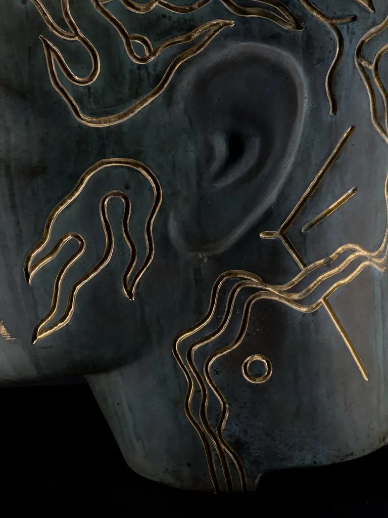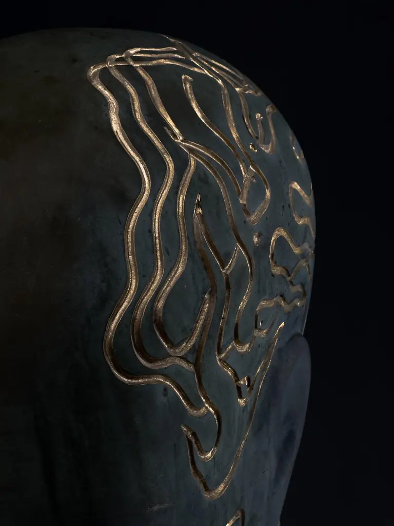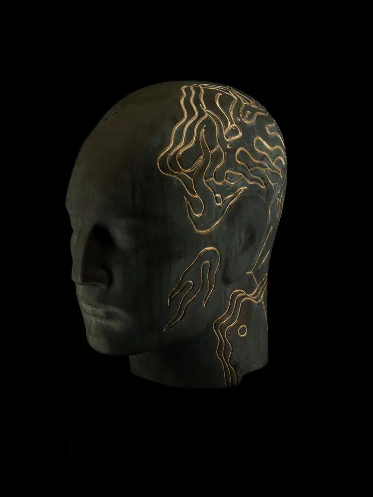 Dazed Sapiens by Twenty Second FactoryCreated by Roman Shcherbakov aka Dase X Vladislav Volosenko X Bogdan KryvosheyaDimensions: D 52 x W 35 x H 60 cmMaterials: Bronze."Sapiens" is a series of sculptures representing the timeless essence of humanity. This work of art delves into the complex web of human existence, emphasizing that while the world around us is constantly changing, our basic human nature remains steadfast. It serves as a symbol of unity, depicting the idea that although we are different in many ways, we are fundamentally the same at our core. "Sapiens" celebrates the diverse experiences of humanity throughout history and in different contexts."Sapiens" is distinguished by a unique combination of artistic generations, which was the main goal of the creative director of the project, Bohdan Kryvosheya. The sculpture pays homage to the past, honoring the wisdom of older artists, Vlada Volosenko who came up with the shape of the head. At the same time, it covers the creativity of the younger generation, Roman Shcherbakov, who depicted the "tattoo" on the left side of the sculpture. Such a combination is the harmonious coexistence of tradition and innovation, reminding us that the wisdom of the past and the vision of the future can make our common human dialogue more interesting. At its core, Sapiens is a testament to the indomitable power of art to bridge generational gaps, highlighting our shared humanity while honoring our diverse individual experiences.Founded in 2017 by Bogdan Kryvosheya, a creative director from Kyiv, 22F (Twenty-Second Factory) is dedicated to bringing innovative art, design, and decor solutions to life. Based in Kyiv, Ukraine, we extend our services both locally and globally, offering a full spectrum of creative production services from the initial idea to shipping and assembly on location.At 22F, we care deeply about the aesthetics of each project stage and provide an individual approach to every client. Honesty and flexibility are at the core of our values, ensuring that each detail of a project is meticulously attended to. Our work is people-centric, and client relationships are paramount to us. We thrive on artistic and creative projects but are equally adept at handling technical work based on client needs.