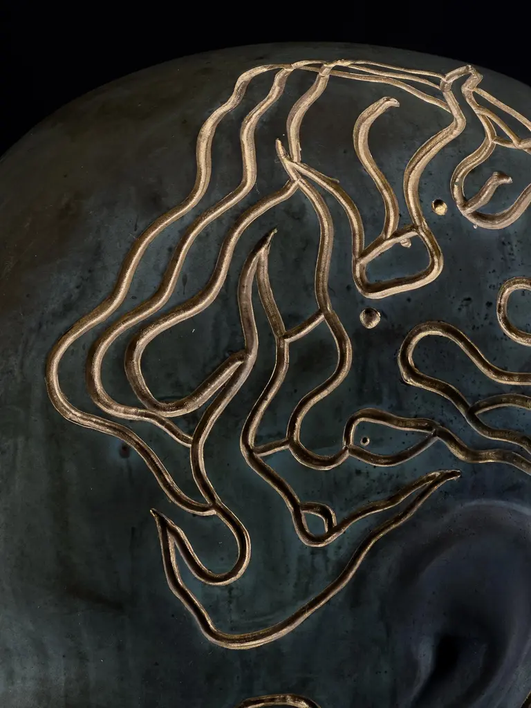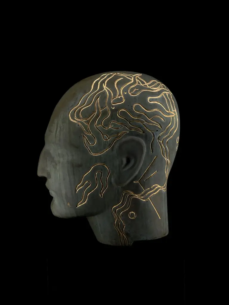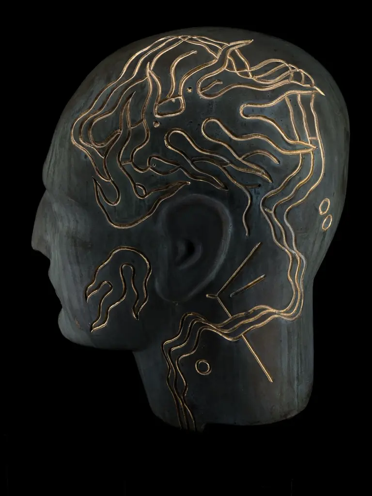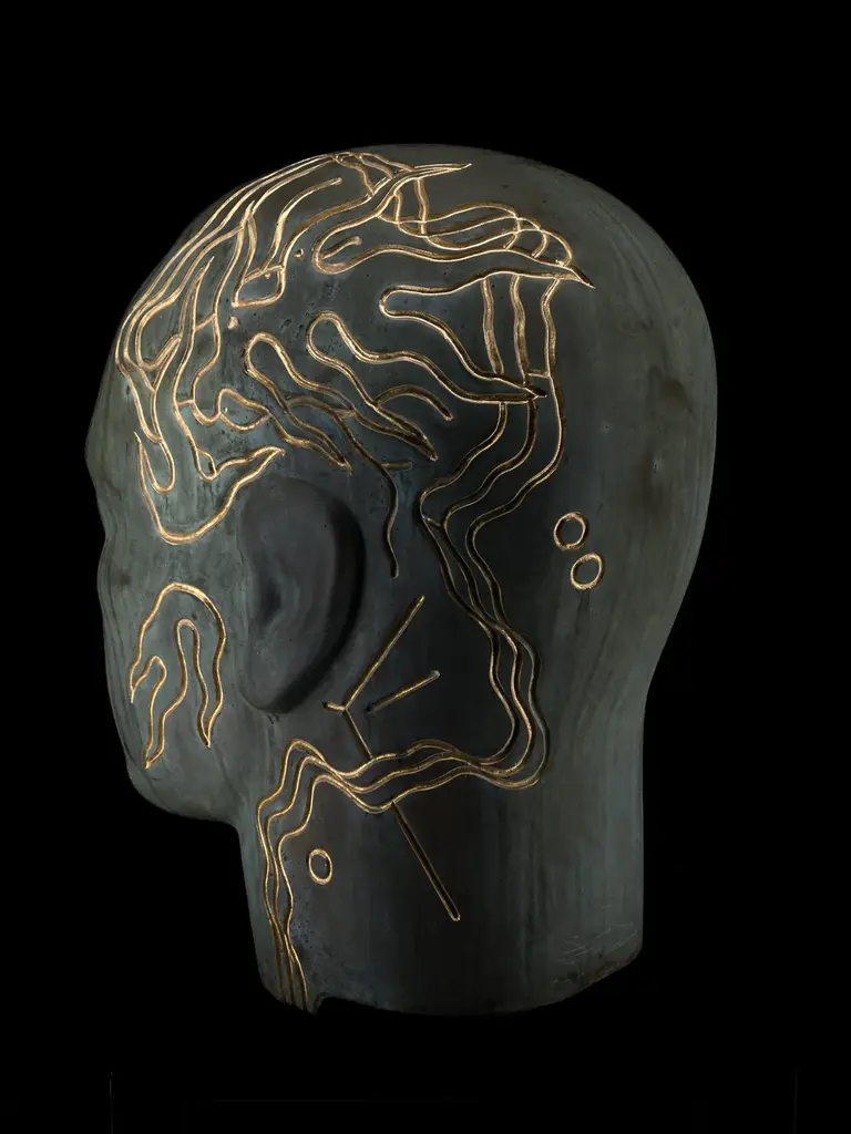 Dazed Sapiens by Twenty Second FactoryCreated by Roman Shcherbakov aka Dase X Vladislav Volosenko X Bogdan KryvosheyaDimensions: D 52 x W 35 x H 60 cmMaterials: Bronze."Sapiens" is a series of sculptures representing the timeless essence of humanity. This work of art delves into the complex web of human existence, emphasizing that while the world around us is constantly changing, our basic human nature remains steadfast. It serves as a symbol of unity, depicting the idea that although we are different in many ways, we are fundamentally the same at our core. "Sapiens" celebrates the diverse experiences of humanity throughout history and in different contexts."Sapiens" is distinguished by a unique combination of artistic generations, which was the main goal of the creative director of the project, Bohdan Kryvosheya. The sculpture pays homage to the past, honoring the wisdom of older artists, Vlada Volosenko who came up with the shape of the head. At the same time, it covers the creativity of the younger generation, Roman Shcherbakov, who depicted the "tattoo" on the left side of the sculpture. Such a combination is the harmonious coexistence of tradition and innovation, reminding us that the wisdom of the past and the vision of the future can make our common human dialogue more interesting. At its core, Sapiens is a testament to the indomitable power of art to bridge generational gaps, highlighting our shared humanity while honoring our diverse individual experiences.Founded in 2017 by Bogdan Kryvosheya, a creative director from Kyiv, 22F (Twenty-Second Factory) is dedicated to bringing innovative art, design, and decor solutions to life. Based in Kyiv, Ukraine, we extend our services both locally and globally, offering a full spectrum of creative production services from the initial idea to shipping and assembly on location.At 22F, we care deeply about the aesthetics of each project stage and provide an individual approach to every client. Honesty and flexibility are at the core of our values, ensuring that each detail of a project is meticulously attended to. Our work is people-centric, and client relationships are paramount to us. We thrive on artistic and creative projects but are equally adept at handling technical work based on client needs.