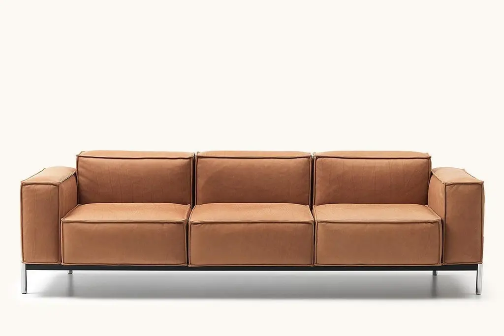 Opulent elements for modular use. The architectural structure of DS-21 is created by a metal frame that surrounds individual cushion volumes, seemingly carrying them effortlessly. The opulent elements counteract the clear lines of the frame. They function as modules that can be relocated. DS-21 comes in different upholstery combinations, with leather or fabric covers, and in three different frame widths with matt black or high-gloss chrome-plated metal legs. An armchair rounds out this family of seats. The DS-21 range is complemented by coffee tables and side tables with glass tops in different versions.This sculpture looks as if it has always stood there. A statement, essentially: I’ve been here forever. And yet: the proportions seem fresh and new, unused and inviting, classic and modern. DS-21 is the work of Stephan Hürlemann. The Appenzell native studied architecture at ETH Zurich and was the partner of designer Hannes Wettstein, after whose death in 2008 he took over as creative director of the world-renowned Zurich studio. Hürlemann remains true to the classic style. With the seating landscape for De Sede, he has created a floating sculpture that flirts with the lightness of being and proves itself by mastering the demands of everyday life. The sofa’s architectural structure combines the informality of a seating landscape with the grandeur of high legs – a blend previously only found in the lounge setting.Additional Information:Material: LeatherColor: Select - HazelType: Nappa leather, lightly pigmentedThickness: 1.2 to 1.4 mmCharacteristics: Meticulous processing preserves the natural quality – with a characteristic pattern of creases, grain and pores. After tanning, it is dyed with a special finish to maintain the natural aura while also offering improved protection. It undergoes visible ageing, lending it an endearing patina.Dimensions: 236 W x 84 D x 69 H cmSeat height 43 cmArmrest height 61 cmAvailable in other upholstery options: Living, touch, natural, coloral, club, craft.