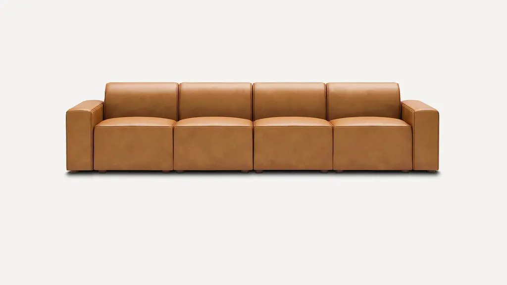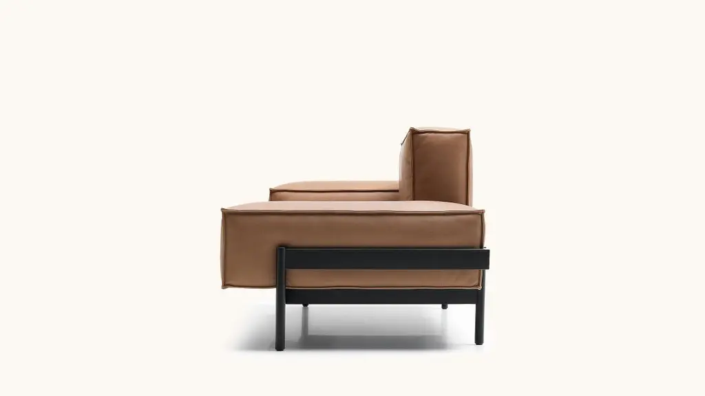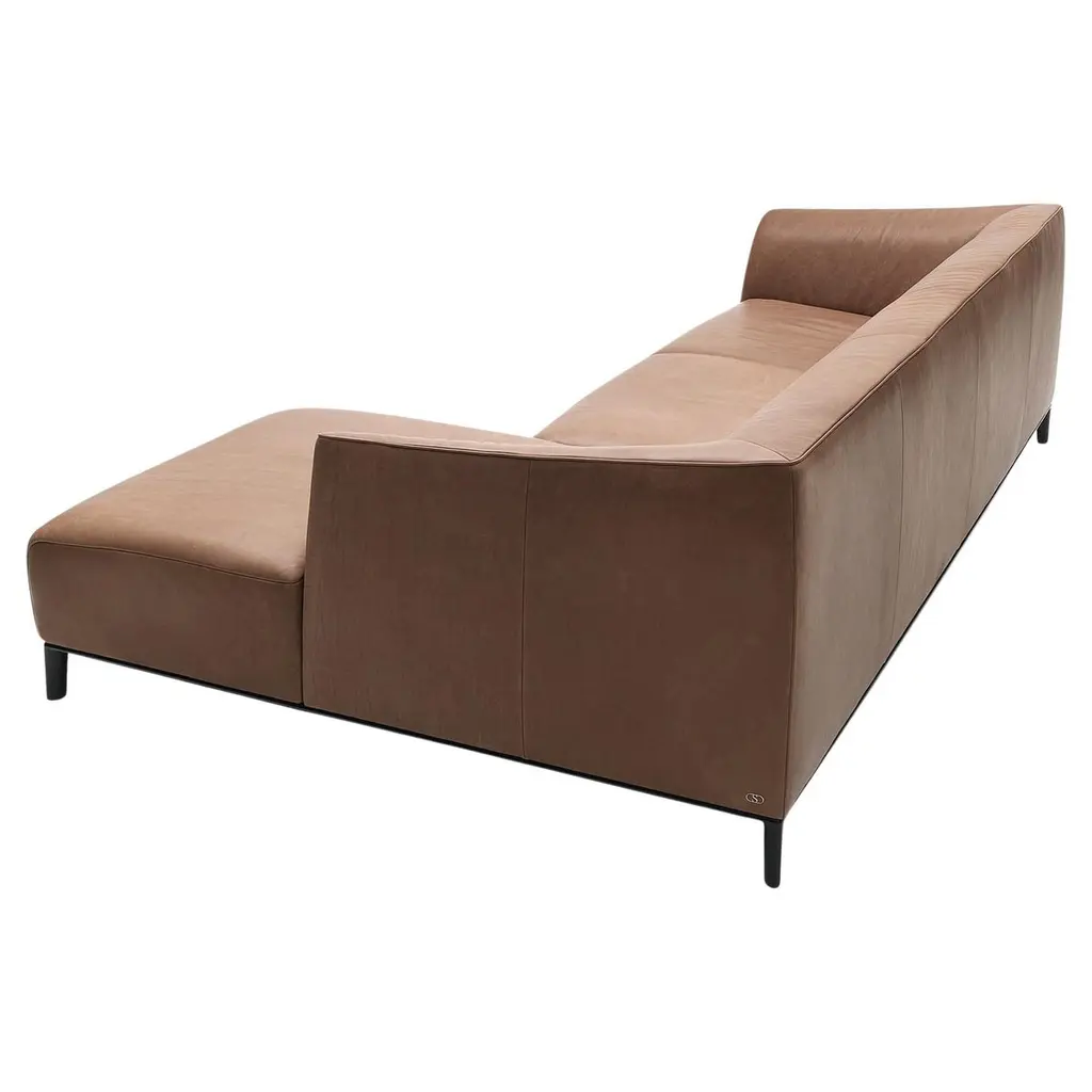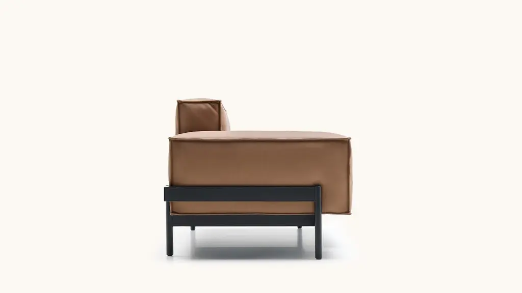 Opulent elements for modular use. The architectural structure of DS-21 is created by a metal frame that surrounds individual cushion volumes, seemingly carrying them effortlessly. The opulent elements counteract the clear lines of the frame. They function as modules that can be relocated. DS-21 comes in different upholstery combinations, with leather or fabric covers, and in three different frame widths with matte black or high-gloss chrome-plated metal legs. An armchair rounds out this family of seats. The DS-21 range is complemented by coffee tables and side tables with glass tops in different versions.This sculpture looks as if it has always stood there. A statement, essentially: I’ve been here forever. And yet: the proportions seem fresh and new, unused and inviting, Classic and modern. DS-21 is the work of Stephan Hürlemann. The Appenzell native studied architecture at ETH Zurich and was the partner of designer Hannes Wettstein, after whose death in 2008 he took over as creative director of the world-renowned Zurich studio. Hürlemann remains true to the Classic style. With the seating landscape for De Sede, he has created a floating sculpture that flirts with the lightness of being and proves itself by mastering the demands of everyday life. The sofa’s architectural structure combines the informality of a seating landscape with the grandeur of high legs, a blend previously only found in the lounge setting.Additional information:Material: LeatherColor: Select, NougatType: Nappa leather, lightly pigmentedThickness 1.2-1.4 mmCharacteristics: Meticulous processing preserves the natural quality, with a characteristic pattern of creases, grain and pores. After tanning, it is dyed with a special finish to maintain the natural aura while also offering improved protection. It undergoes visible ageing, lending it an endearing patina.Dimensions: 173 W x 84 D x 69 H cmSeat height 43 cmArmrest height 53 cmAvailable in other upholstery options: Living, touch, natural, coloral, club, craft.The indicated price refers to the Select upholstery.