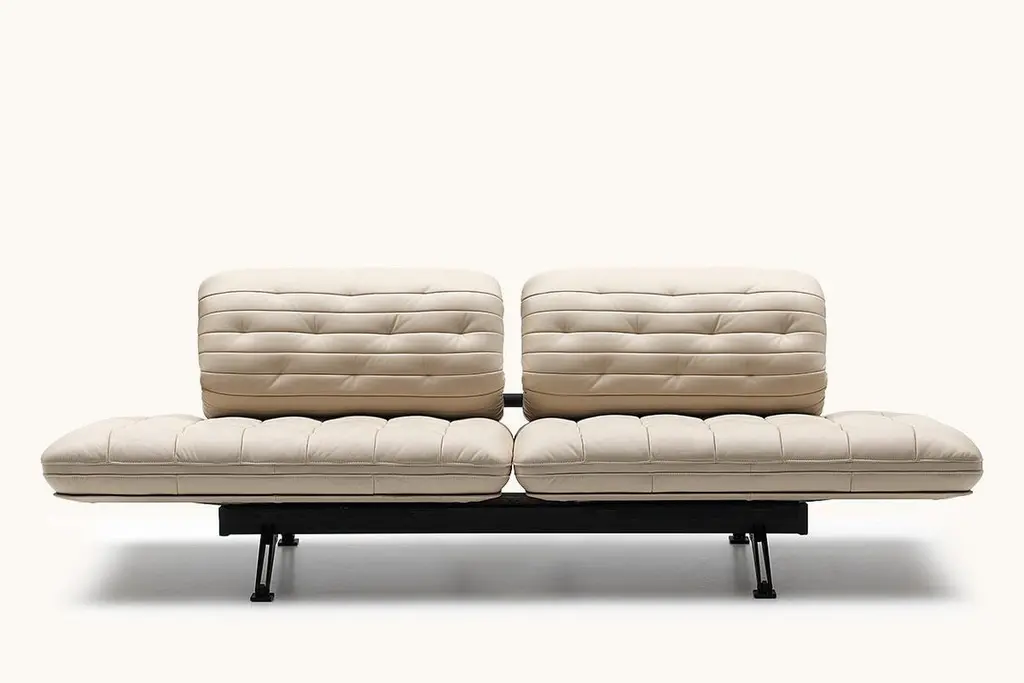 With two flicks of the wrist, DS-490 can be converted into a double recliner. The seat units with elaborately stitched upholstery offer supple comfort and create a contrast to the precisely contoured seat shape and the mechanism hidden underneath. The two seating elements lie on thin platforms that can be rotated independently of each other by 90°; the sofa with modern seat depth thus becomes a recliner for relaxing. Independently of the seating elements, the two backrests are also individually adjustable. This makes the seat depth and the back height easy to individualize.In the middle of the room, with soft forms and in distinctive leather, DS-490 is a perfect piece of furniture for all the captains: behind the elegant look of a curved backrest and straight guide for the counterpart hides a cockpit as a styling object that becomes a generous recliner with just a few flicks of the wrist. Finally, time to relax! We refined the mechanism, look and feel of this sculpture for more than a year. And now, we’re very relaxed, too: because DS-490, with its patchwork leather look and carefully handcrafted tucks, emphasizes breathtaking elegance while at the same time supporting the elasticity of the leather and the flexibility of the individual elements.Additional information:Material: LeatherCategory: Select, off-whiteType: Nappa leather, lightly pigmentedThickness 1.2-1.4 mmCharacteristics: Meticulous processing preserves the natural quality, with a characteristic pattern of creases, grain and pores. After tanning, it is dyed with a special finish to maintain the natural aura while also offering improved protection. It undergoes visible ageing, lending it an endearing patina.Dimensions: 240 W x 142 D x 104 H cmSeat height 43 cmAvailable in other upholstery options: Living, touch, naturale, club, coloral, craft, velour.