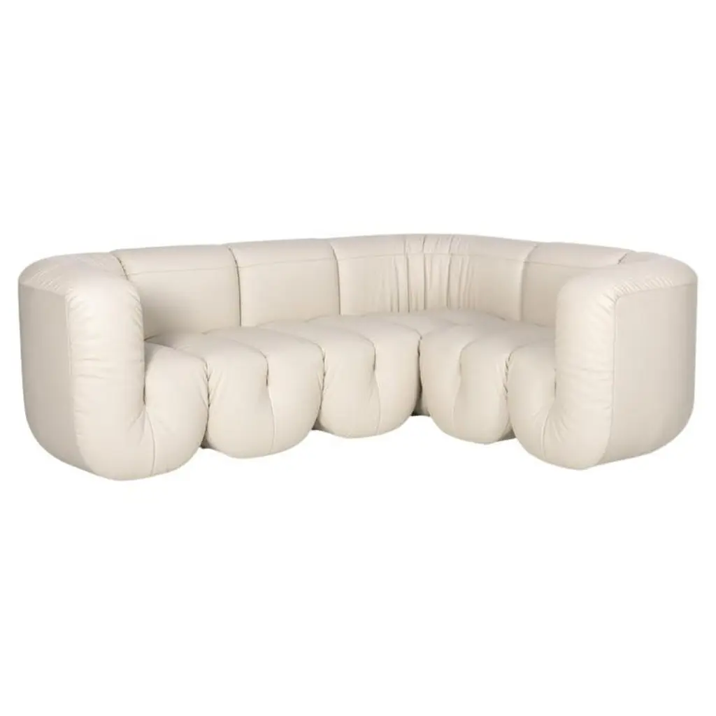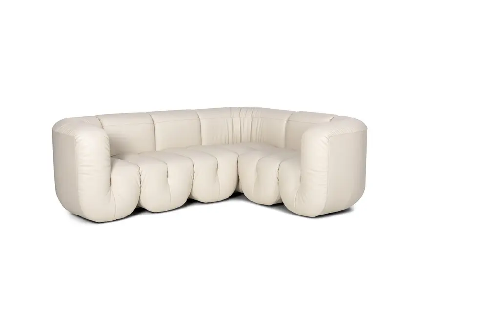 The DS-707 is the modern composition of handmade leather and contemporary design. The flowing, soft transitions combine the postmodern era of Swiss furniture design with the clear open structures of brutalism that inspired designer Philippe Malouin. Available as a comfortable armchair or as a modular sofa that can be combined in infinite ways, the DS-707 is the visual perfection of form that gives every room a unique highlight.Where the St. Lawrence River Montreal flows in a serpentine pattern, a residential complex marked by the architectural style of brutalism rises up on a small headland, the famous Habitat 67. 354 concrete blocks arranged in a stepped pattern adorn a part of Montreal’s multifaceted skyline, designed by architect Moshe Safdie for Expo 67. Not far from this memorable silhouette grew up Philippe Malouin, who was inspired by these forms of brutalism throughout his life. After Malouin received the call from De Sede and initial ideas were exchanged, the designer was largely given a free hand and Malouin started his work “by making things”. Simply drawing, cutting or even folding different materials are part of the creation of the new sculpture DS-707. Philippe Malouin experimented with folding foam for the Swiss manufacturer - the result: a modular sofa system with a traditional yet contemporary aesthetic. Carried by the sweeping serpentines of the river, the idea for a sculpture that fuses into one form was born in the London studio near the Thames. The masterpiece DS-707 is an homage to Classic De Sede designs and was created for the future.Additional information:Material: UpholsteryColor: PerlaDimensions: 99 W x 30 D x 34 H inchesSeat height 17 inchesAvailable in other color upholstery options.