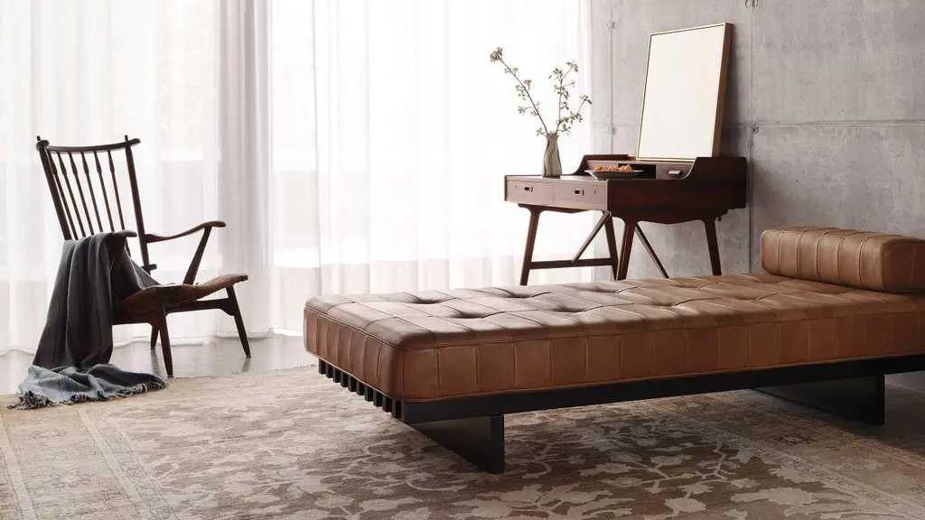 Feet up and just unwind - our DS-80 relocates sleep to the daytime hours, the time when we are supposed to be active and getting things done. Its subtle appearance reminds us to take a relaxing break from our hectic everyday lives once in a while – and that’s certainly nothing to be ashamed of.The modest dimensions of the daybed are a benefit here, as they gently force you to spend some time on your own. Part of the basic furnishings of any upscale interior in the 1920s, the flat daybed has been enjoying a Renaissance for several years now. Our daybed caused a stir more than 30 years ago, with its elaborate patchwork processing and freely placeable back cushions. This timeless Classic has now been gently updated. It is available both as a daybed and as a small lounge sofa, too.The daybed doubles as a lounge sofa the daybed DS-80 has established itself as a timeless Classic by De Sede ever since it was launched in 1969: to this day, the model is a paradigm of highclass leather manufacture andpopular all-over the world.To be honest, we’re not quite sure which we like better: the newly produced models or the 50-year-old sculptures that have acquired a patina of their own. A narrow, high-quality mattress lies atop a frame made of filigree wood slats - the patchwork is sustainably made of just a single hide.Additional information:Materials: LeatherCategory: Select-TeakType: Nappa leather, lighty pigmentedThickness: 1.2 to 1.4 mmCharacteristics: Meticulous processing preserves the natural quality – with a characteristic pattern of creases, grain and pores. After tanning, it is dyed with a special finish to maintain the natural aura while also offering improved protection. It undergoes visible ageing, lending it an endearing patina.Dimensions: 202 W x 92 D x 58 H cmAvailable in other upholstery options: Living, touch, naturale, coloral.