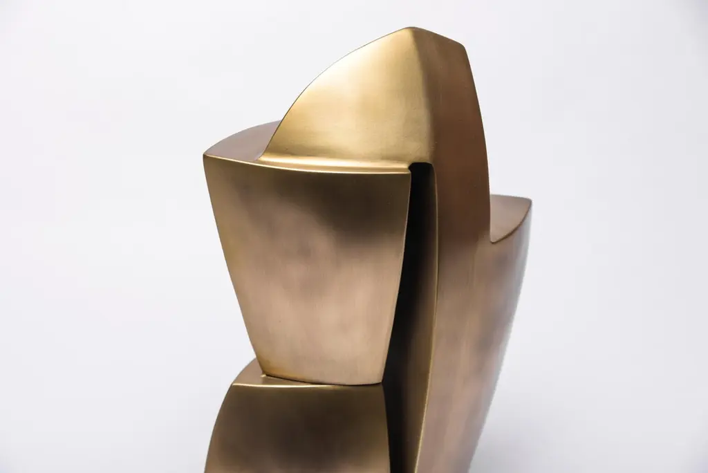 Deconstructed Tower Sculpture In Bronze-Patina Brass By Patrick Coard, Paris