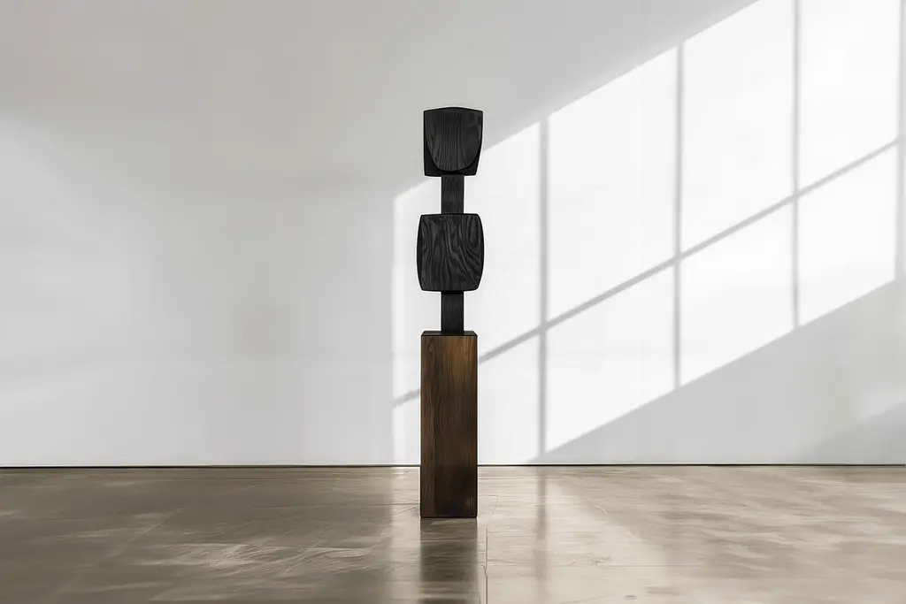 Decoration Modern Art Abstract Solid Wood Unseen Force No39 by NONO——This monolithic sculpture, designed by the talented Artist Joel Escalona, is a towering example of beauty in craftsmanship. Hand and digital machine made; the standing sculpture stands tall as a monument to the skill of the artist. The wood carved sculpture is a biomorphic pillar with an intriguing, wonderfully undulating surface, crafted with precision and care to create a wonderful patina.Inspired by masters of abstract carving like Constantin Brancusi, Isamu Noguchi and Jean Arp, this outstanding sculpture embodies the spirit of organic art. Each piece is made to order, specific for each client and takes around 3-4 months to complete. Although each sculpture is unique, they all maintain the same spirit, proportions, and dimensions that make them so exceptional.This sculpture, like a beautiful work of art, is prepared to be mounted on a plinth, which is included. The organic sculpture is a beautiful expression of art and nature, a testament to the wonder of the natural world and the power of human creativity. This hand-crafted wood sculpture is a true masterpiece and a magnificent addition to any collection.——NONO is a Mexican design brand with more than 10 years of experience dedicated to the production of interior furnishings, editions, and custom-made projects. At NONO, we create pieces of extraordinary beauty, accommodating the particular needs and tastes of each client with exclusive high-quality designs.————Some details to consider when placing an order with us:• Catalog images are digitally generated. Actual products may slightly vary in texture, grain, and final finish due to natural material differences. Despite these variations, our expertise ensures each piece maintains high quality and matches the intended design.• All of our products are made to order, and the lead time for standard products is estimated to be 9 to 12 weeks, plus shipping time. However, special pieces or sculptures may require a longer lead time.• We offer customization in dimensions and finish for all of our furniture pieces, which may result in additional charges.• We only facilitate freight services by a third party. The client is solely responsible for any associated import/export taxes, as well as any necessary customs paperwork.• We are not responsible for any damages that may occur during shipping or for any customs-related delays.