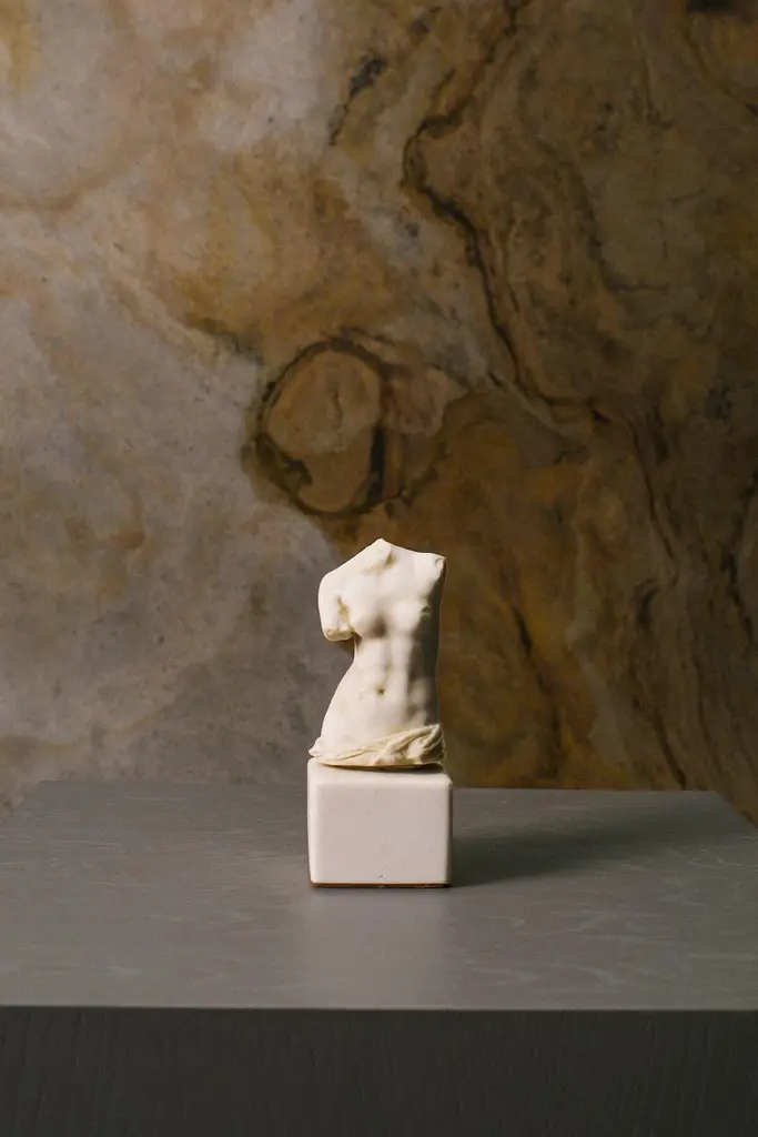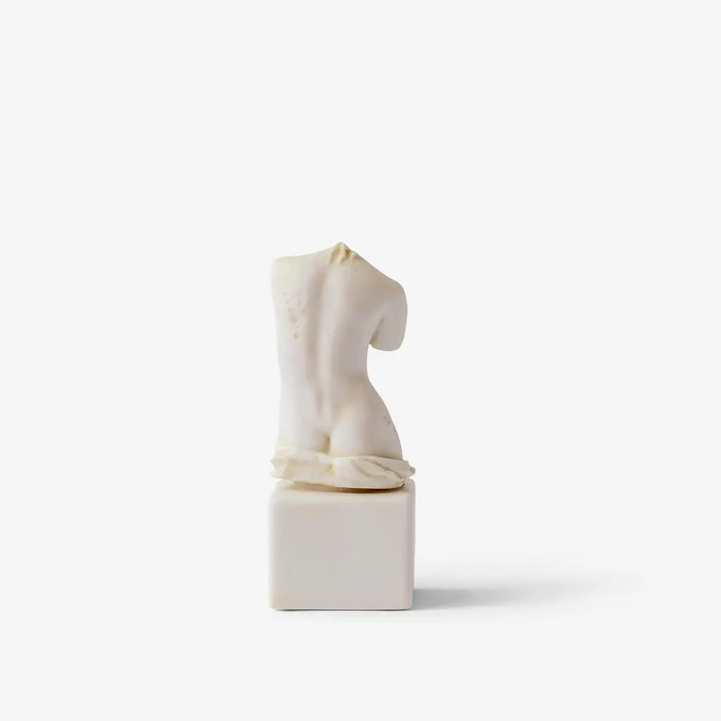 Bring the timeless elegance of classical antiquity into your space with this sculptural female torso, inspired by Greco-Roman art traditions. In art history, a torso refers to a sculpted representation of the human body-absent of arms, legs, and head-evoking the essence of idealized beauty.Expertly crafted from compressed marble powder, this decorative object captures the textured beauty and weight of ancient sculpture while remaining a refined contemporary accent. Draped detailing around the hips alludes to classical garments, enhancing its sculptural authenticity.This piece offers more than decoration-it is a tribute to the aesthetics of the ancient world, reinterpreting the female form through a historical and artistic lens.Perfect for display on shelves, mantels, or desks, the sculpture brings an intellectual and refined tone to any interior.Measures: Height: 5.9'' / Weight: 800 grThis is a work that symbolizes the depiction of the ideal female form.-Produced from pressed marble powder.-Produced from the original molds of the works from the museum.-Can be used indoors and outdoors.