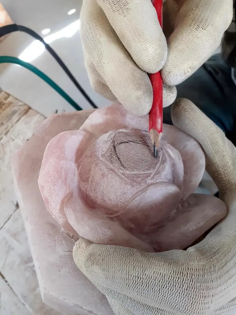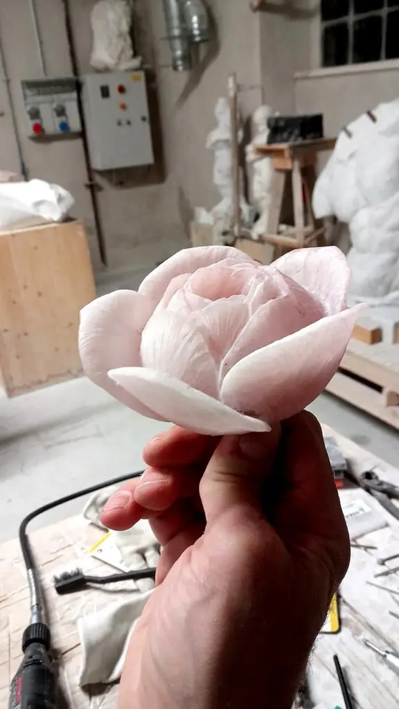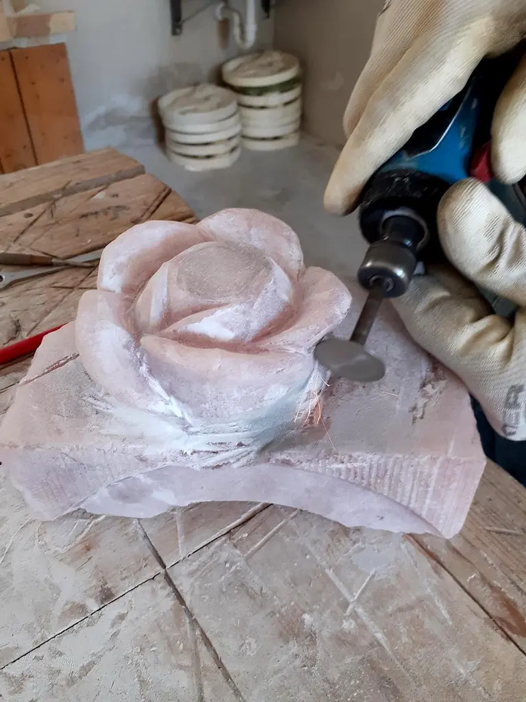 Decorative Sculpture Ornament Rose Blossom Solid Block White Statuary Marble