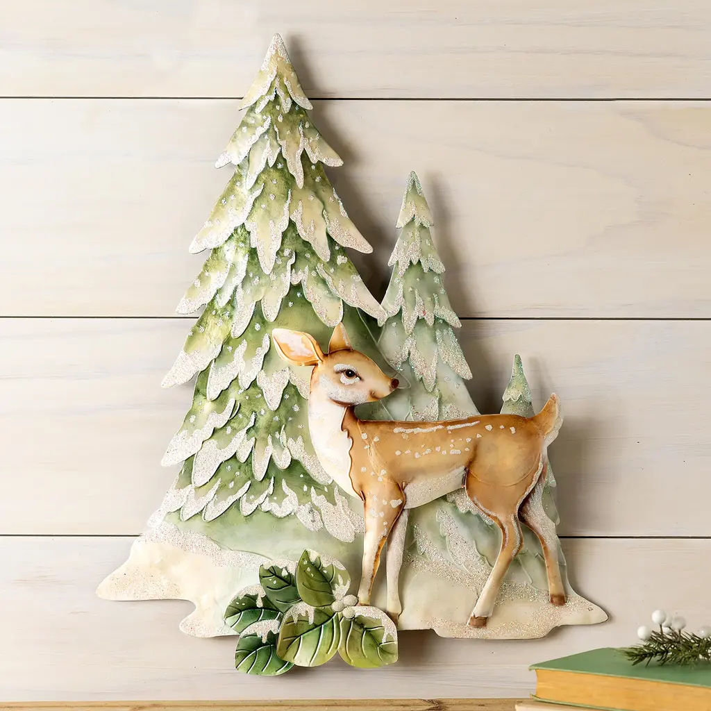 Add a little light and a lot of heart to your decorating this year with our oversized Deer and Friends Solar Statute. Statue has a wealth of details, like the gorgeous “carved” look in the animals’ fur and the gorgeous color featured by each. The cluster of woodland animals all snuggle up to this deer, who holds the solar lantern in its mouth. The top of the lantern features a solar panel, which allows the design to absorb light through the day and shine by night. Display this substantial statue in full sun and it will come on at dusk to run for 6 hours on/18 hours off. Crafted of durable resin, this piece is perfect for withstanding the season or for year-round display. Statue sits at nearly 3 feet tall and will add a charming look by a pathway, stairway and so much more.