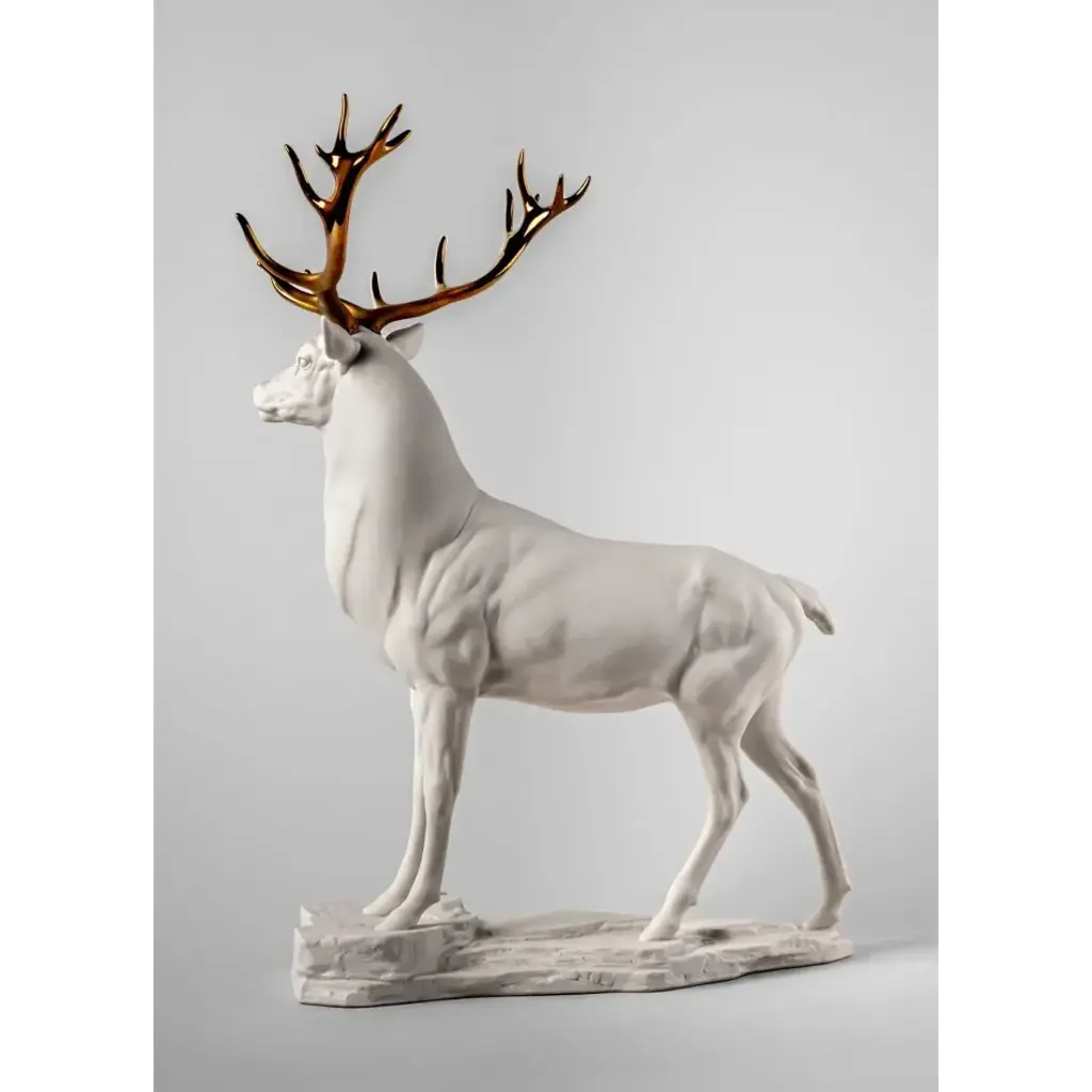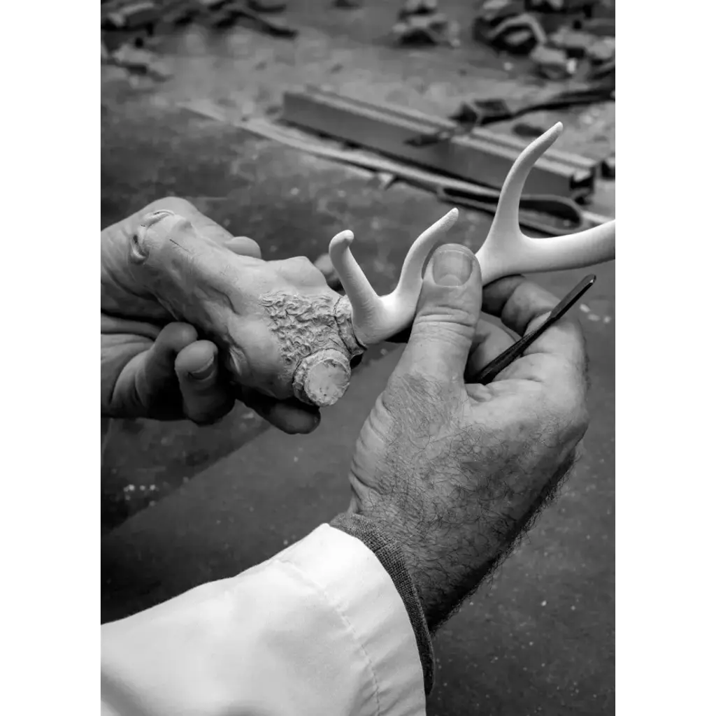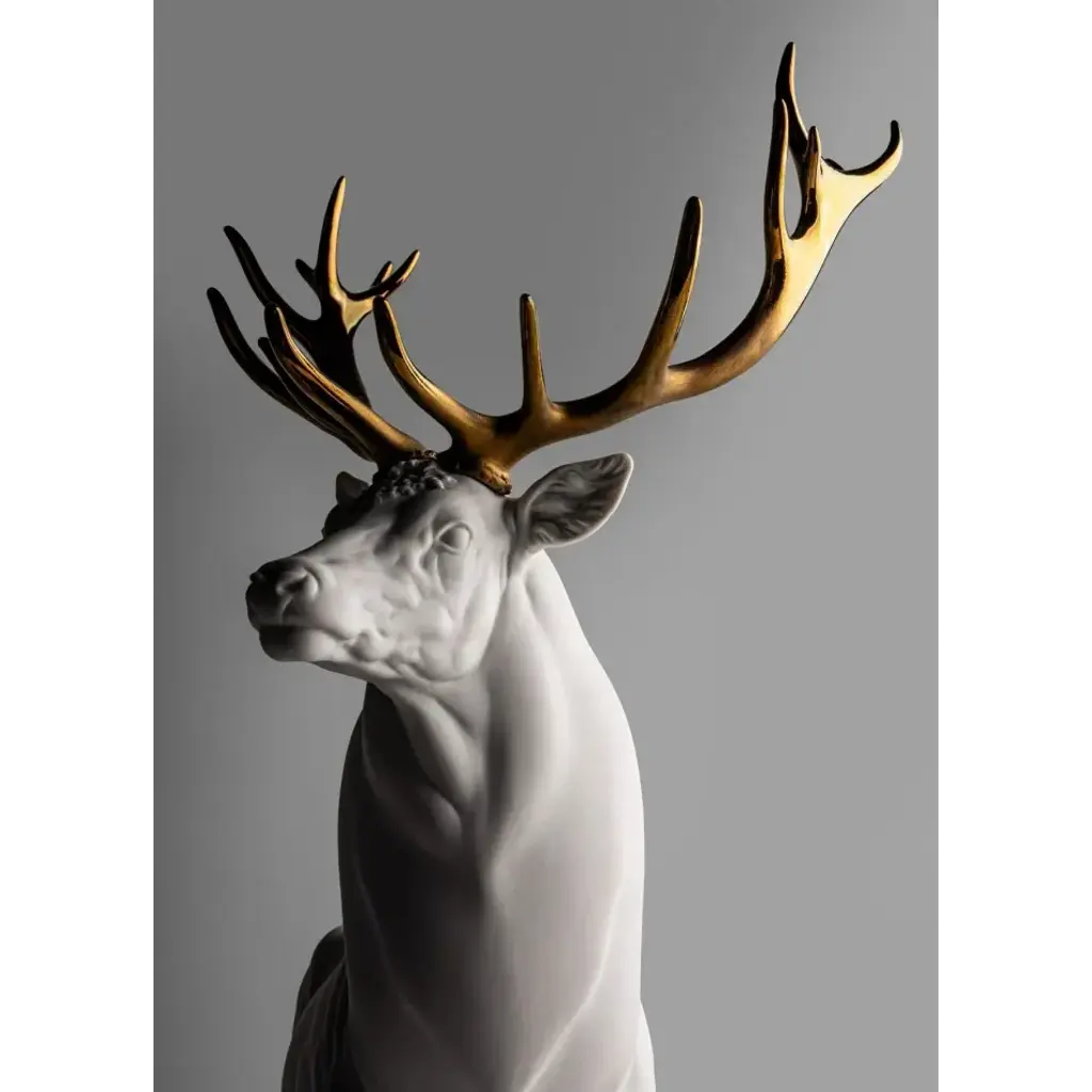 Deer is an homage to the king of the forest, one of the most beautiful and elegant creatures in the animal kingdom. This sculpture captures the nobility and assertiveness that characterizes this powerful mammal. The piece is made in white matte porcelain, without glaze, which makes it easier to appreciate the fine details of the sculpture such as the facial features, the musculature or the thick coat. An iconic Spanish brand, Lladro is a world leader in the creation of porcelain art. Started by brothers Juan, Jose and Vicente Lladro in 1953, the ceramic figurines were initially inspired by the works of great European manufacturers like Meissen and Sevres. Over time, a unique style was forged, consisting of elongated lines, a revolutionary single-firing method, and soft pastel tones.