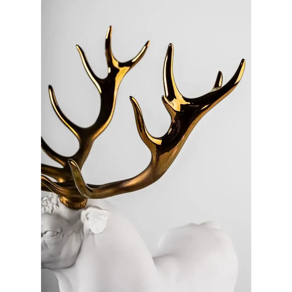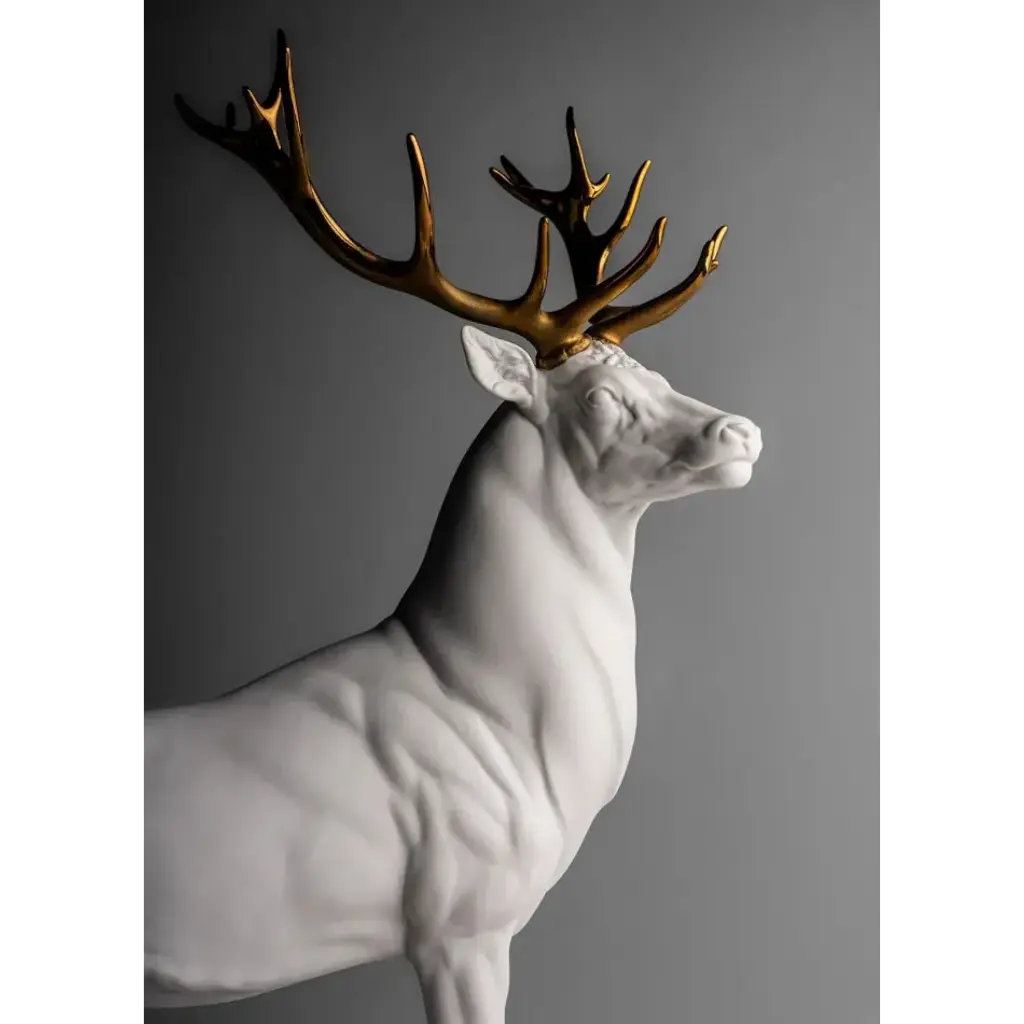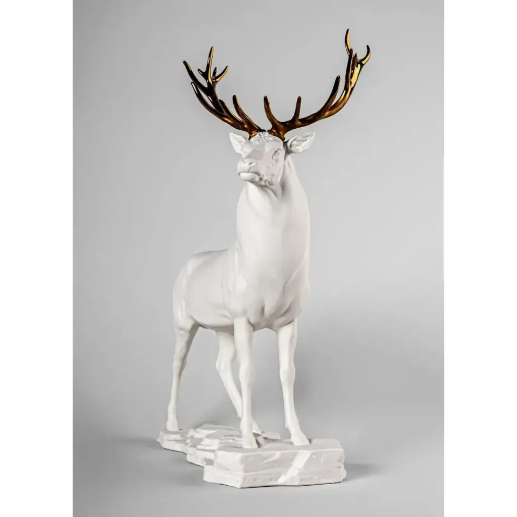 Deer is an homage to the king of the forest, one of the most beautiful and elegant creatures in the animal kingdom. This sculpture captures the nobility and assertiveness that characterizes this powerful mammal. The piece is made in white matte porcelain, without glaze, which makes it easier to appreciate the fine details of the sculpture such as the facial features, the musculature or the thick coat. An iconic Spanish brand, Lladro is a world leader in the creation of porcelain art. Started by brothers Juan, Jose and Vicente Lladro in 1953, the ceramic figurines were initially inspired by the works of great European manufacturers like Meissen and Sevres. Over time, a unique style was forged, consisting of elongated lines, a revolutionary single-firing method, and soft pastel tones.