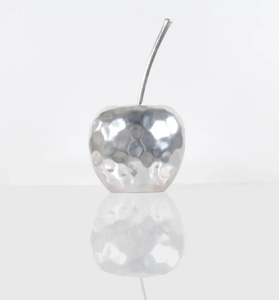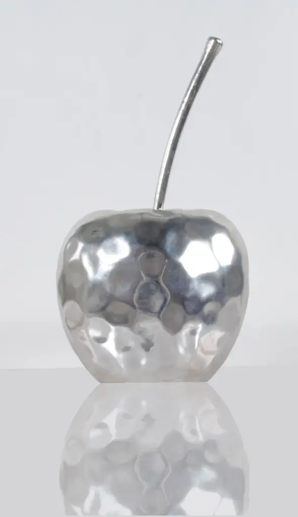 This apple would be a great look for the kitchen or dining table. With the semi-shiny look and its extraordinary pattern and shape, it would be a marvelous article to add a sense of uniqueness anywhere, like the kitchen area. This resin apple has a subtle yet luxurious look. A fine item to add to the countertops as decoration. This hammered finish mottled apple would look great pear-ed up with our pear statue. 6.5" x 11" x 20"