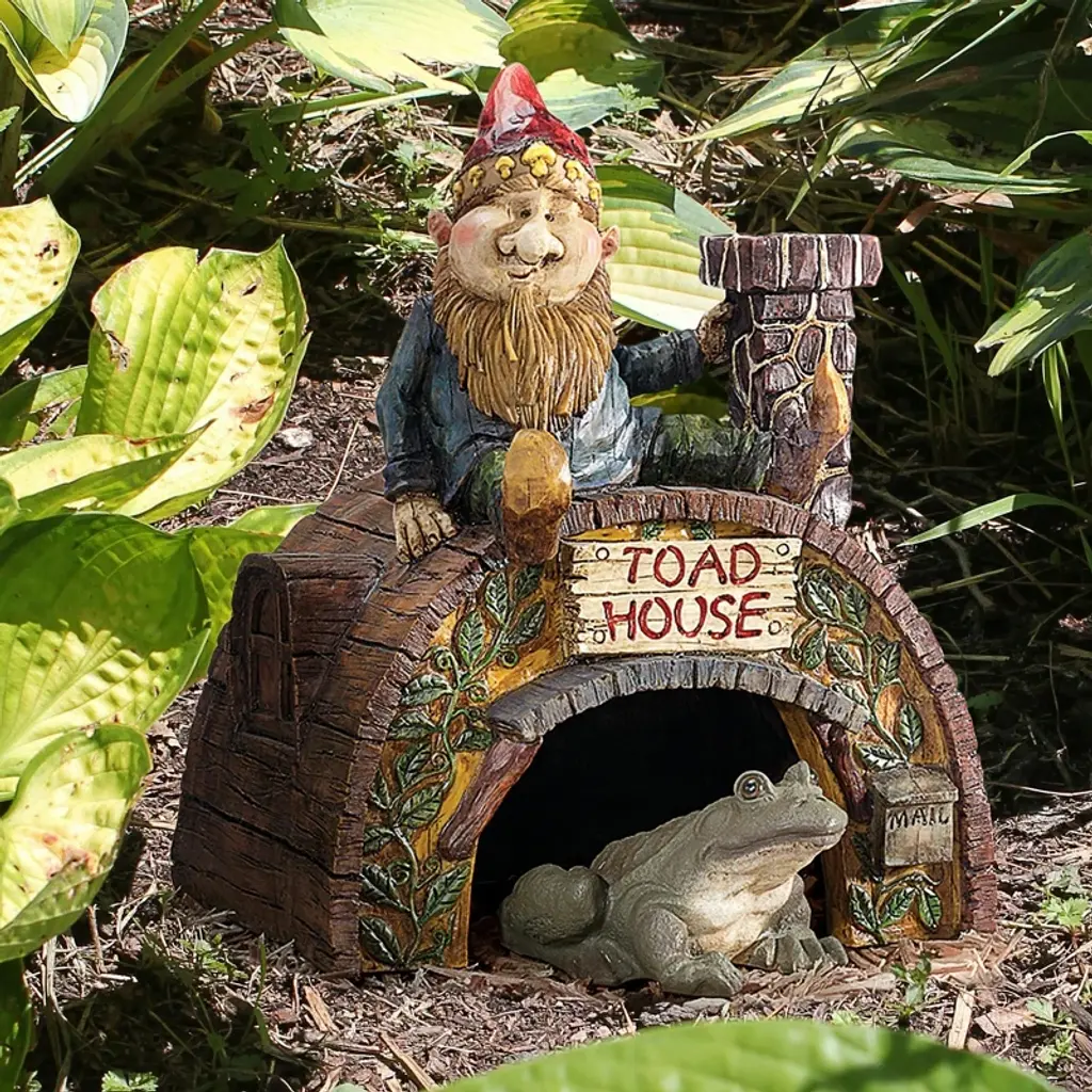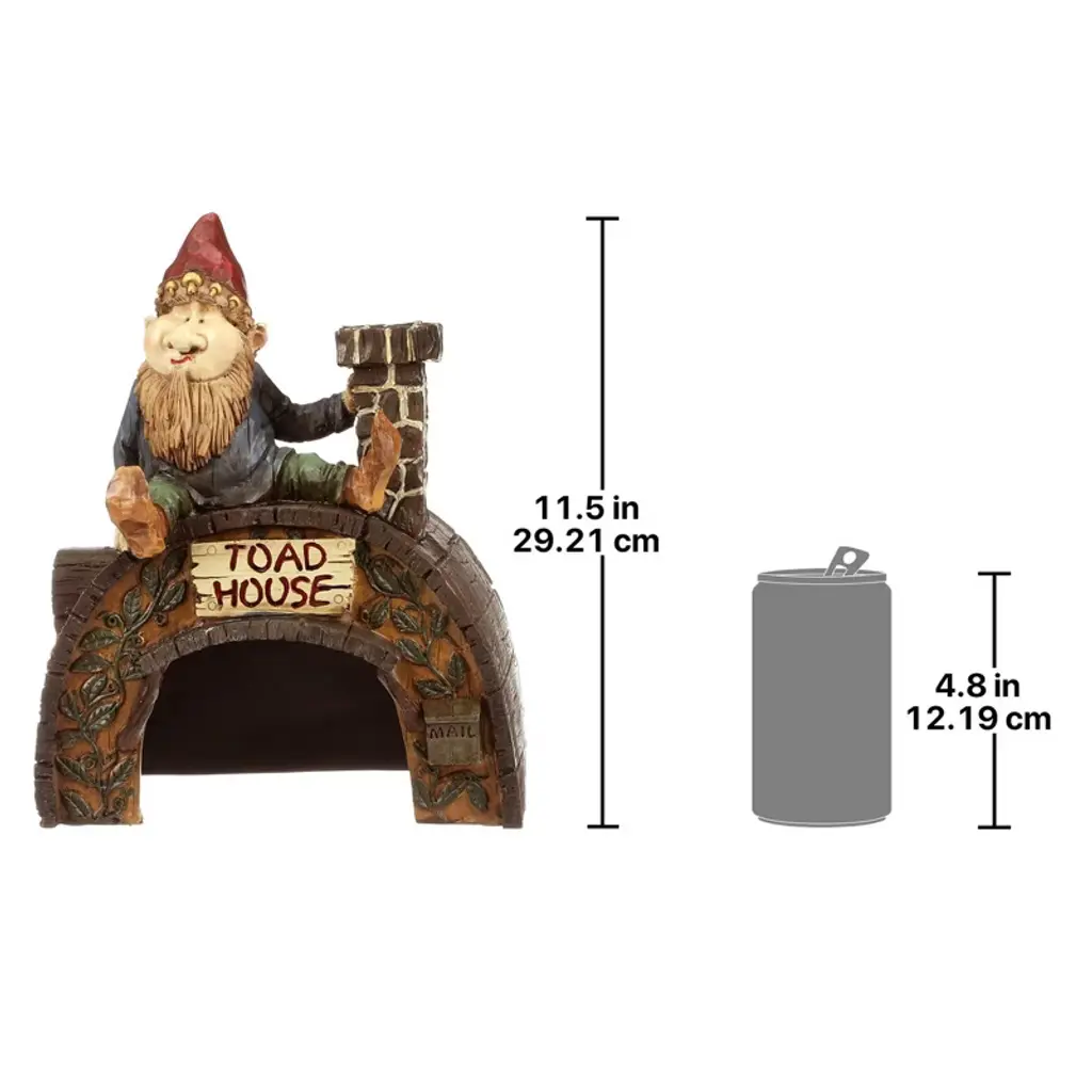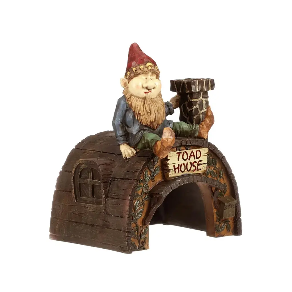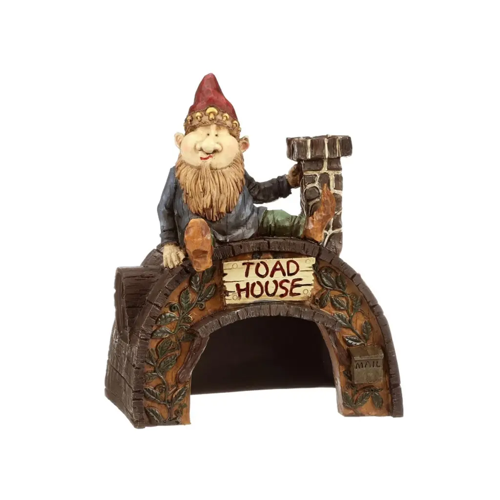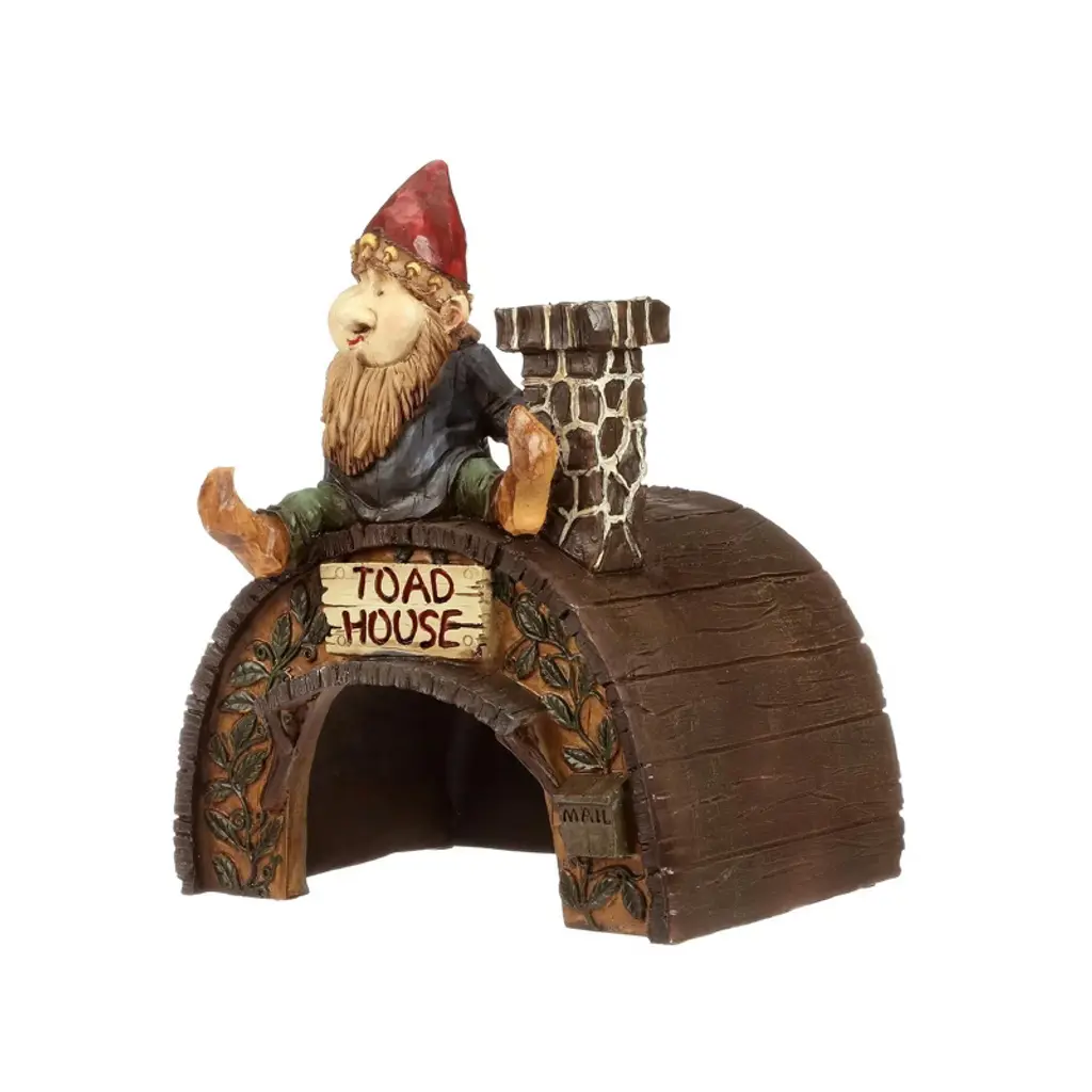 Welcome toads, frogs and all of nature's creatures to this imaginative sculpture that doubles as prime garden real estate! Sculpted 360-degrees so you can admire delightful details including the arched back door, ivy-covered wood and stone chimney, our Toscano-exclusive quality designer resin statue is watched over by one of artist Korn's signature garden gnomes. Sorry, toad not included. 9"Wx8.5"Dx11.5"H. 3 lbs.