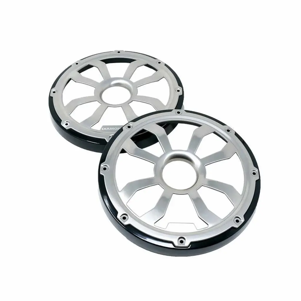 Enhance your outdoor audio experience with this premium bundle featuring 2x Diamond Audio HXM8F4 Marine Speakers and 2x HXM8FGB Motorsport Speaker Grills. The HXM8F4 speakers from the HXMF Series boast a robust 8" design with a Titanium Dome Tweeter for exceptional audio performance in marine and rugged environments. These speakers are designed to withstand wet, salty conditions, making them ideal for boats, ATVs, and more. Crafted with aerospace-grade materials, the speakers offer durability and superior sound quality with crisp highs, detailed mids, and powerful bass. With 150W RMS / 300W MAX Power Handling, Flush Mount Design, and Water/Salt Water resistant features, these speakers are built to endure any outdoor adventure. The HXM8FGB Flush Mount Speaker Grills in Black/Stainless pair perfectly with the HXM8F4 speakers, adding a sleek and stylish finish to your setup. Upgrade your outdoor audio system with Diamond Audio's premium marine speakers and speaker grills for the ultimate sound performance and reliability. Immerse yourself in crystal-clear audio wherever your journey takes you. Upgrade to Diamond Audio for unmatched quality and craftsmanship in outdoor audio equipment.