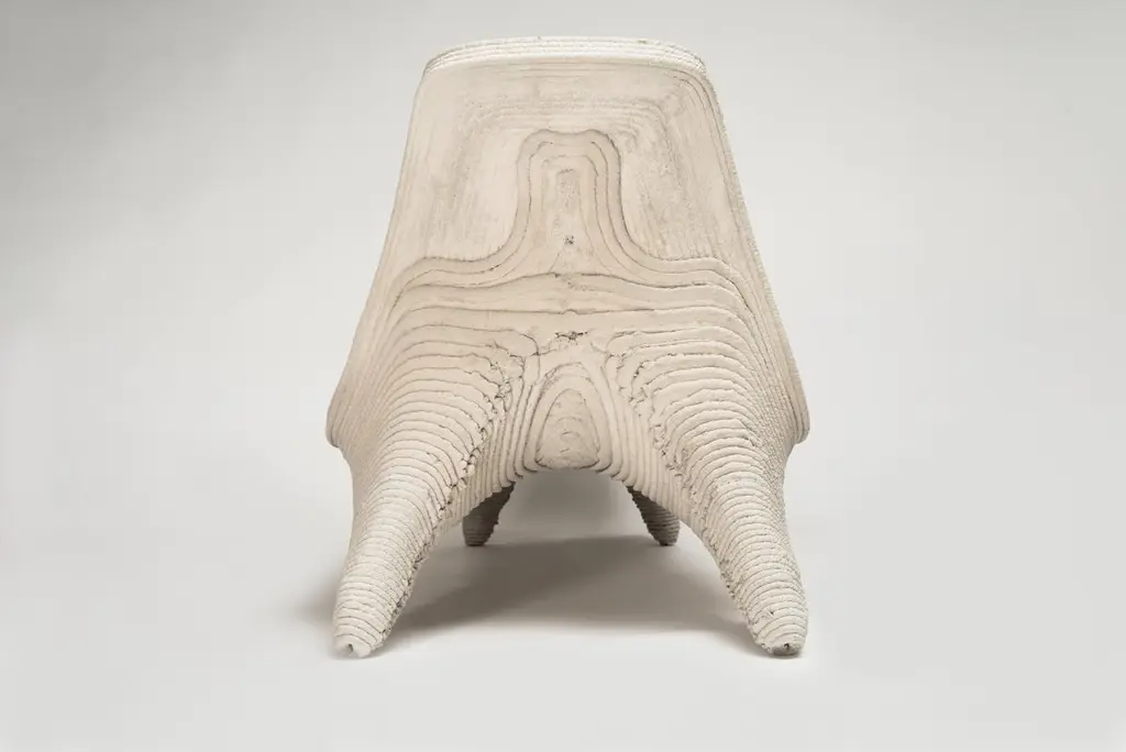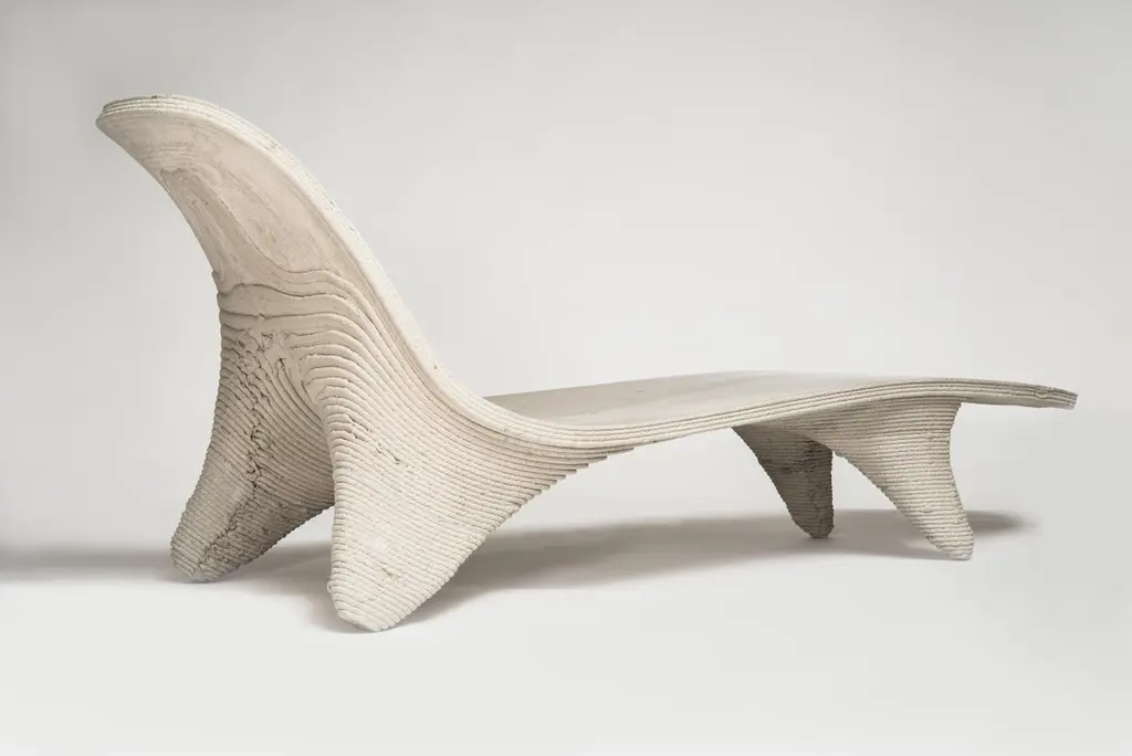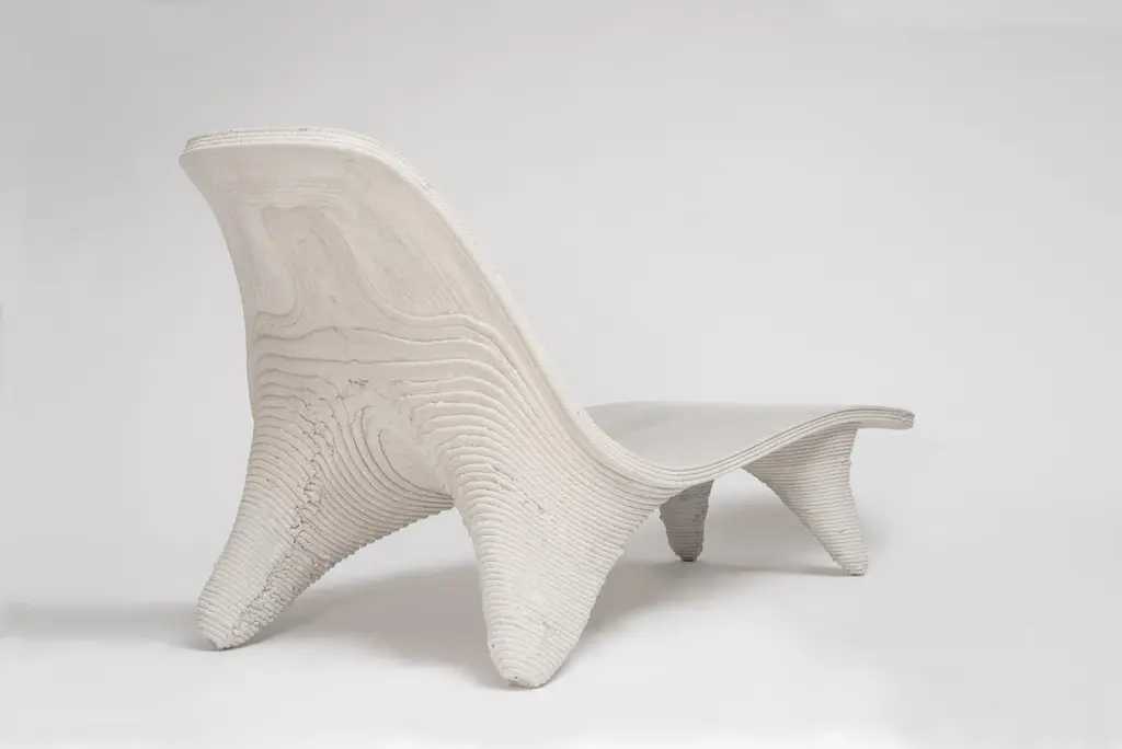 Digital Chaiselongue by Philipp Aduatz2018Edition of 8 + 4 A/PDimensions: 90 × 50 × 50cmMaterials: Concrete 3D printed, Carbon fibre reinforcedThe Digital Chaiselongue emerged from a collaboration of Viennese product designer Philipp Aduatz with Austrian start-up company incremental3d from Innsbruck. The sculptural design language is realized by the use of an innovative digital fabrication technology that allows to 3D print very detailed concrete geometries in a very fast time. The concept is to use the new technology developed by incremental3d for a complex freeform design by Philipp Aduatz and show the new possibilities of creating complex shapes in an application for furniture design. It is further the aim to show the synergy of the experimental and scientific approach on design by Philipp Aduatz with a company that has developed a new technology and looking for applications.For the Digital Chaiselongue a three-dimensional base plate was first 3D printed from concrete. Afterwards the complete geometry was printed in less than one hour onto the plate. To provide sufficient tensile strength, carbon fibres are inserted in sensitive areas. The seating area was finished using a UV-resistant polyurethane coating in delicate handcraft, this should demonstrate that craft and digital technologies can coexist for the purpose of innovation in the 21st century in harmony.Incremental3d is a startup company from Austria founded in September 2017 by Georg Grasser, Johannes Ladinig and Lukas Härtenberger. They have been doing research in the field of concrete printing the last years together at the University of Innsbruck in Austria and have developed a new and innovative technology for concrete 3d printing: unlike other concrete printers, this technology allows to print very fine and detailed freeform geometries very fast with a high resolution closely to the already established Fused Filament Fabrication (FFF) 3D printing technology using polymers. No moulds or support structures are necessary, the freedom of form has a new meaning with this process by using a six-axis robot. Vienna based Designer Philipp Aduatz (born 1982) creates limited edition functional objects that are highly sculptural in nature. Working with innovative materials and fabrication technologies, Aduatz is very much influenced by scientific matters such as chemistry, physics and material technologies. His process combines traditional craft concepts and techniques with cutting edge implements such as 3D printing, 3D laser scanning, CNC milling, and Rapid Prototyping. The experimentation with different materials and their behavior is an important part of his research at the intersection of design and sculpture. Greatly influenced by sculptors such as Constantin Brancusi and Tony Cragg, the designer aims to develop a distinct language of form in each of his pieces, encouraging a new discourse between the object and its user or viewer.