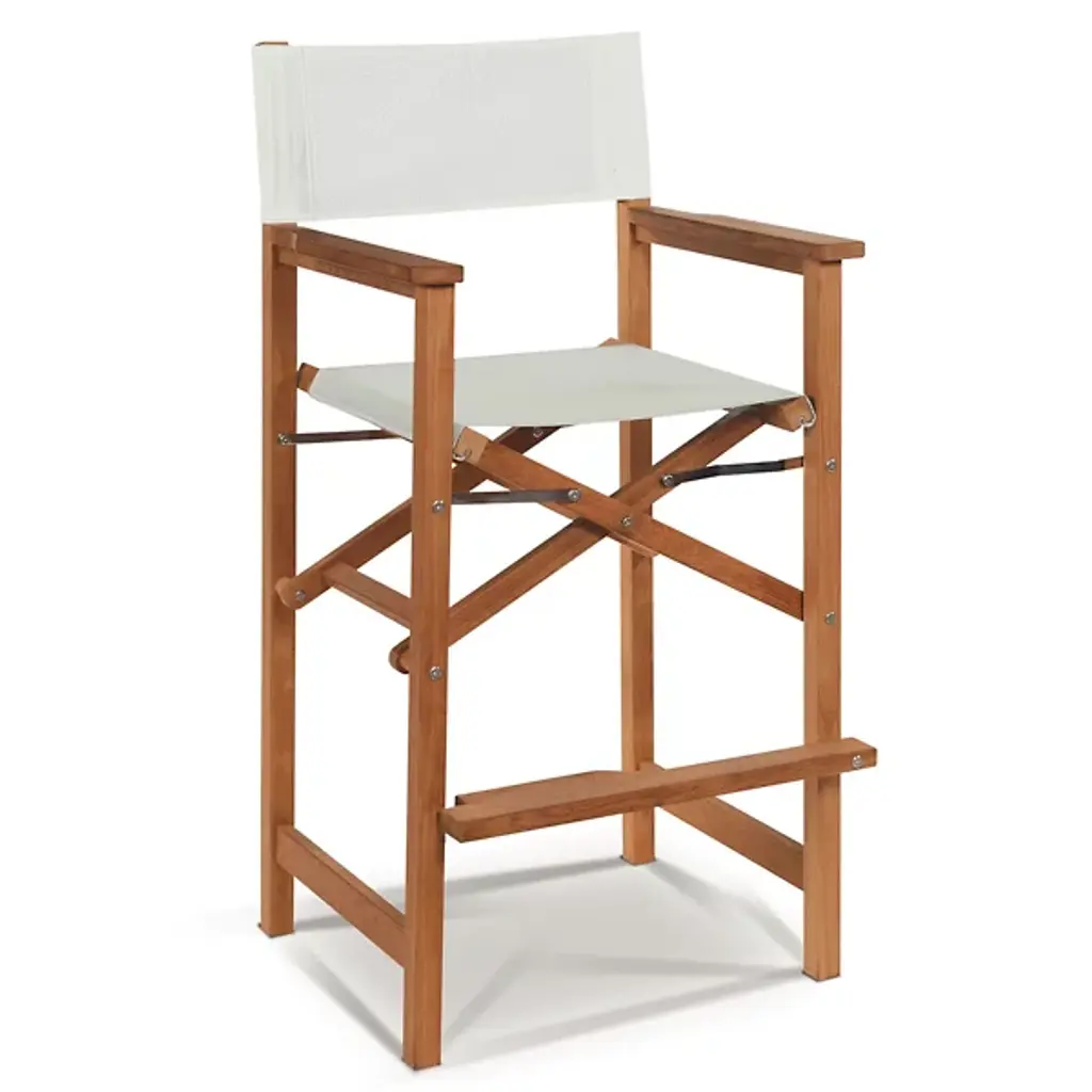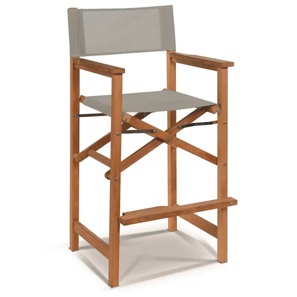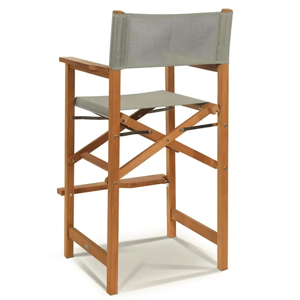 Take a seat in high style with the Director 5-Piece Counter Height Teak Outdoor Dining Set from HiTeak. Crafted carefully with sustainably-harvested teak wood, the table and chairs are tough enough for all manner of outdoor weather and take on a natural silver patina with time. Four telescoping legs support a horizontally-slatted table, while rectangle-framed director-style chairs with robust fabric seats and backs provide ample support while keeping each seat light and easily portable.