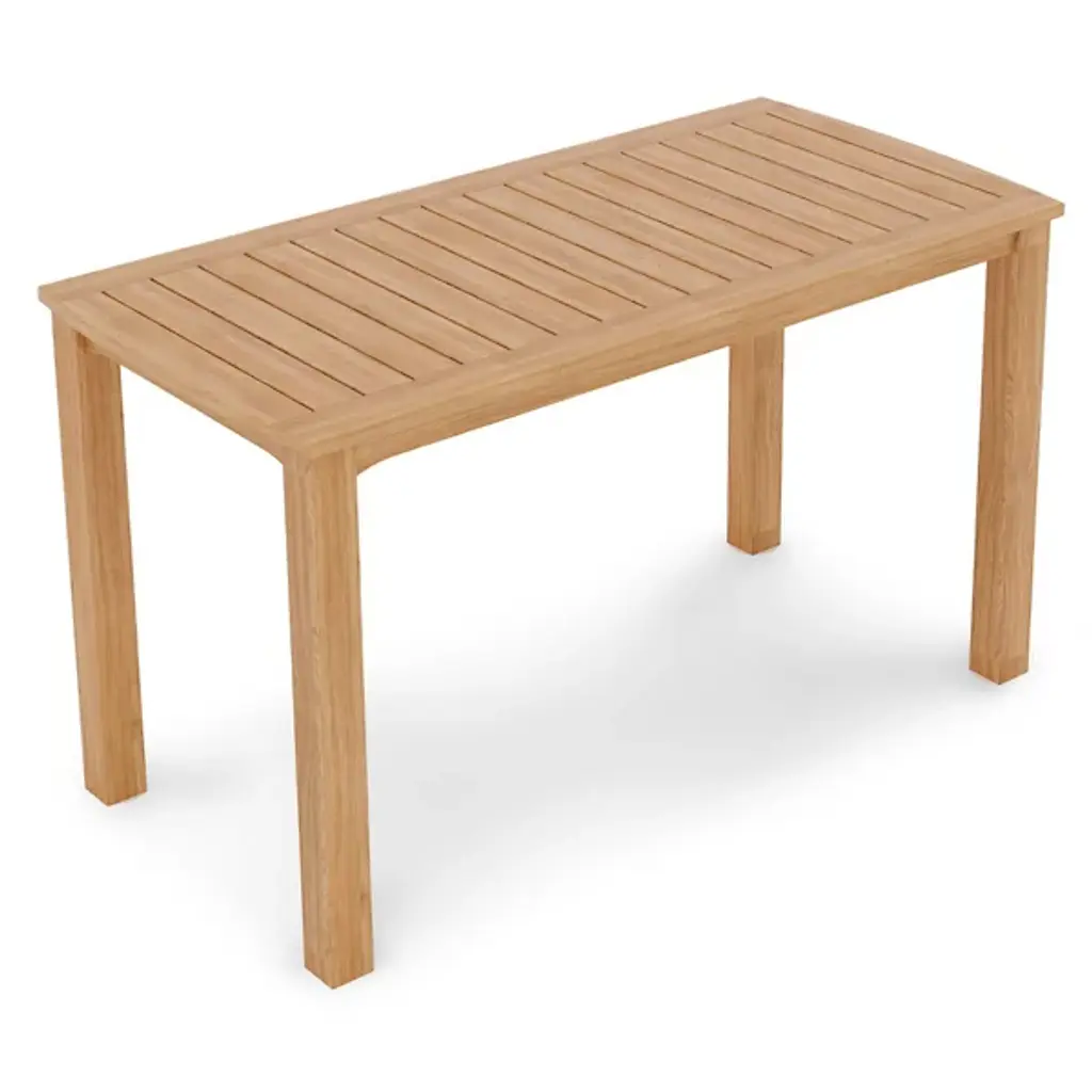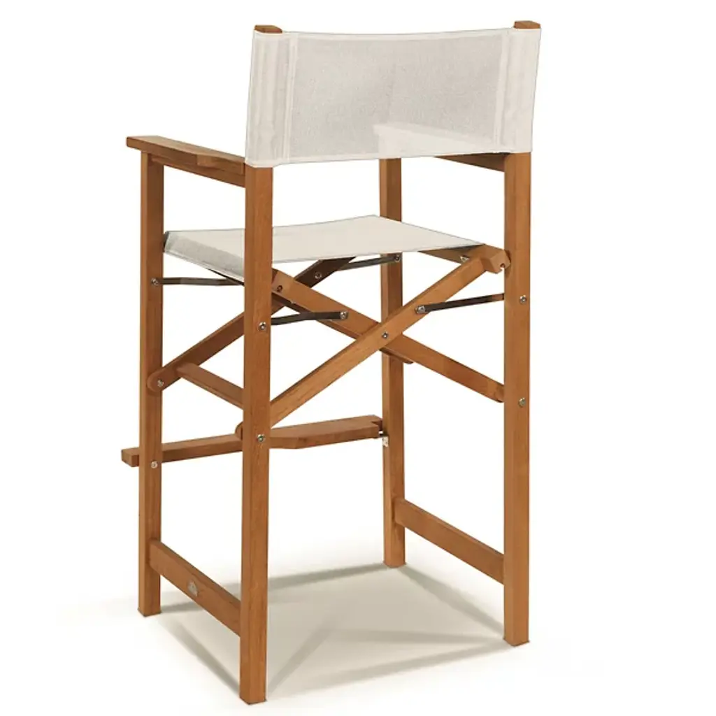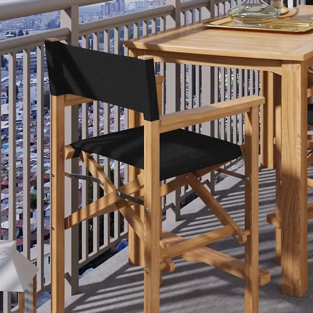 Take a seat in high style with the Director 5-Piece Counter Height Teak Outdoor Dining Set from HiTeak. Crafted carefully with sustainably-harvested teak wood, the table and chairs are tough enough for all manner of outdoor weather and take on a natural silver patina with time. Four telescoping legs support a horizontally-slatted table, while rectangle-framed director-style chairs with robust fabric seats and backs provide ample support while keeping each seat light and easily portable.