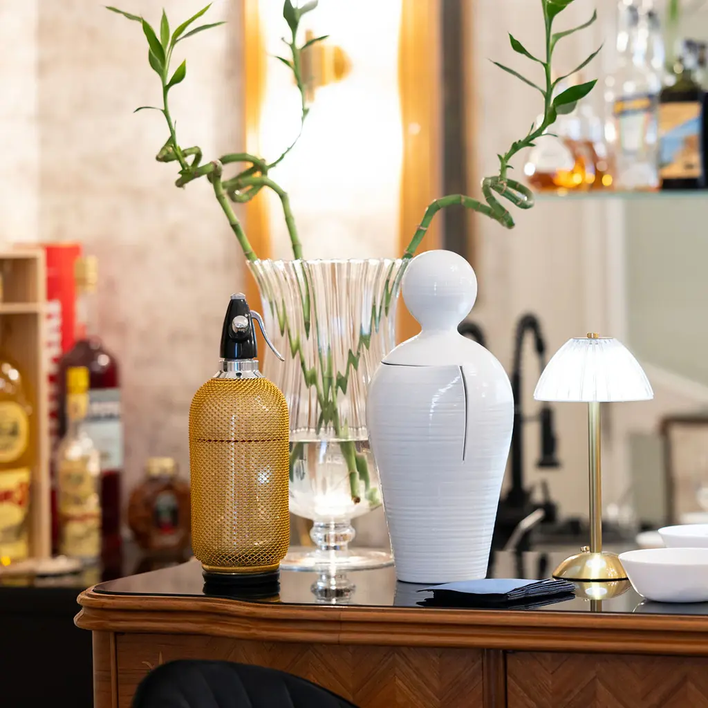 Distilling pure sculptural flair, this vaguely anthropomorphic ceramic vase actualizes the poetic image of a lover allowing their partner to peek into their most intimate self made of freedom, passion, and erotism. The fissure interrupting the vase's harmony symbolizes that generosity of self-giving while stating the piece's unmistakably contemporary spirit. Also available in 60 cm and 90 cm versions. Contact the Concierge for more details.