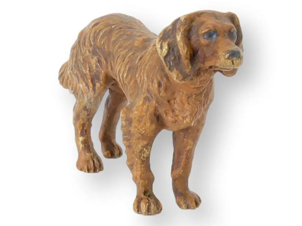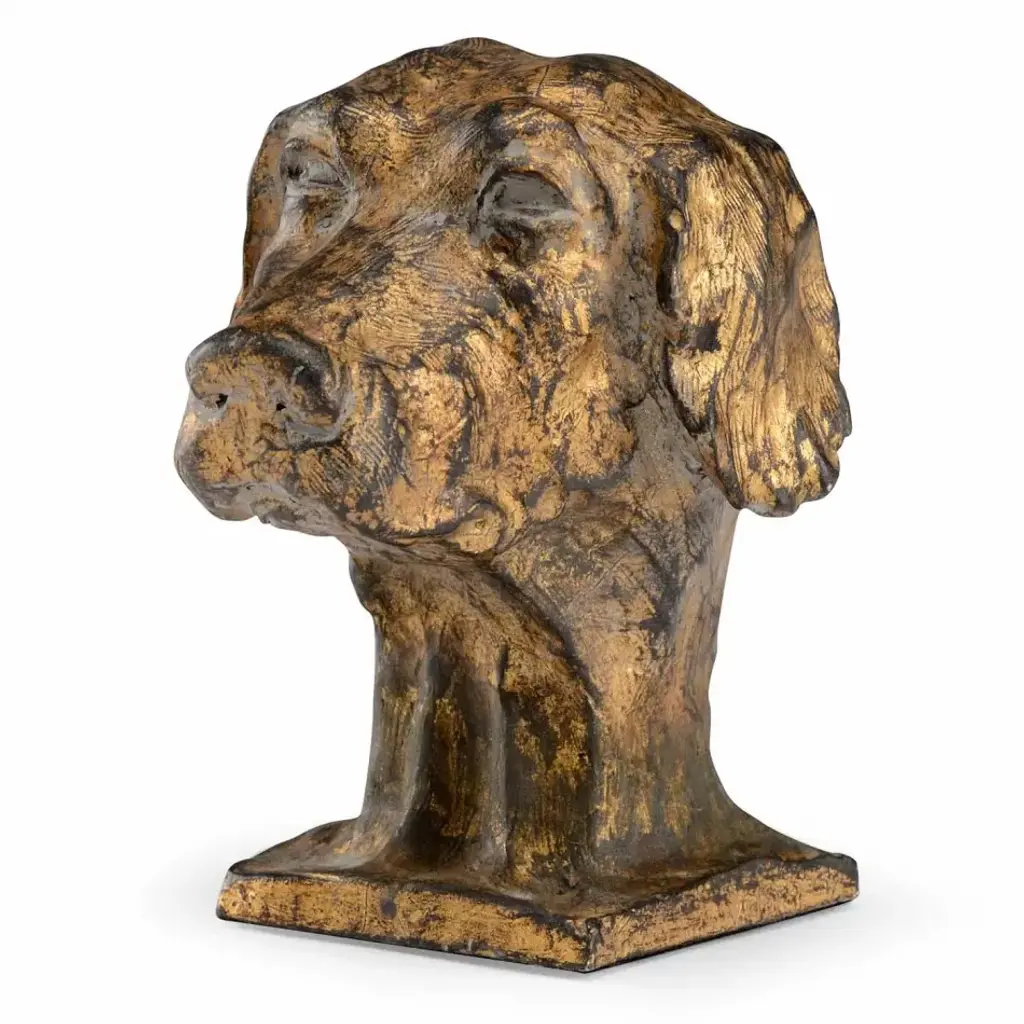 Delightfully charming and capricious, this dog and butterfly sculpture will bring a sense of joy to a formal living room. A rubbed red finish brings a colorful element to a modern or cottage style.