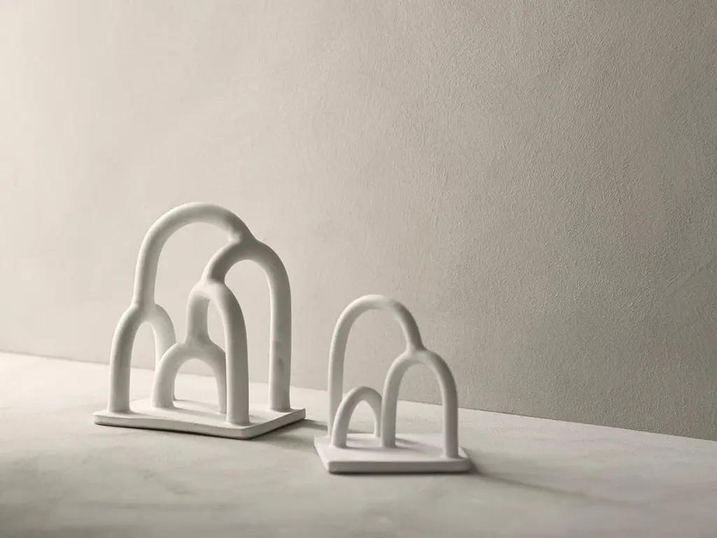 Doodle sculpture IV by Sophie RogersDimensions: D 14 x W 14 x H 17 cmMaterials: Ceramic, glazeOther glaze colors available.Created based on childhood sketching on paper for hours. Arches shapes the sculpture and are loved by the light and shadows. The size differs from piece to piece as they are all unique and handmade.Sculptor Sofia Tufvasson started her professional life as a graphic designer but after 20 years she decided to shift her focus to clay and ceramics. Today Sofia is creating beautiful handcrafted sculptures from her studio in Stockholm.Clay has always been a fascinating material for Sofia Tufvasson. Having worked in the two dimensional world as graphic designer, the clay offered her freedom to think and create three-dimensionally. Her inspiration is found in everyday situations and places such as nature or a shape or certain shadow she passes.Sofia works to emphasise the playfulness of the shadows her pieces cast. It gives them an additional dimension, making them feel alive and interesting. The material is always clay but the type of clay varies depending on the glazing and the desired expression of each individual piece. Sofia works mostly with matte versions of glaze since they help to reinforce the shadows created by a sculpture.