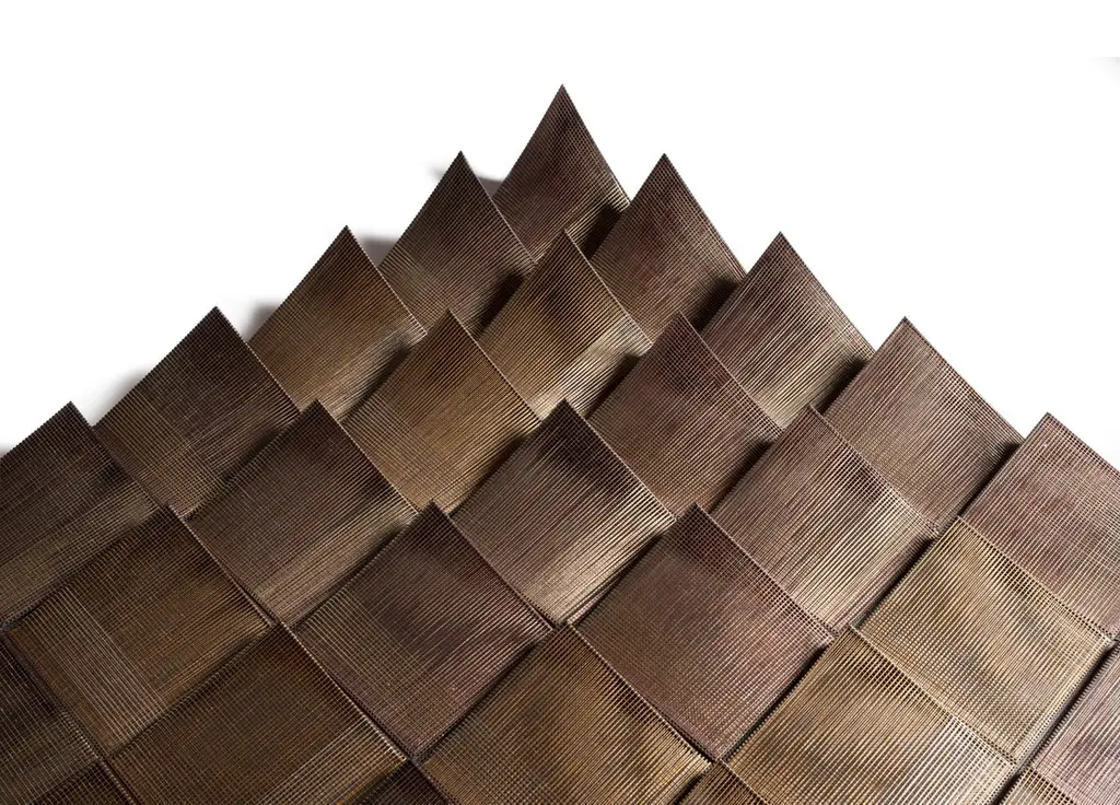 This wall decor piece features a captivating double curvature design, masterfully crafted from a blend of silk, cotton, and wood. The flowing, curved structure creates a sense of dynamic movement, offering an elegant and fluid aesthetic that draws the eye and adds sophistication to any space. The curves appear to gently undulate, evoking a sense of organic rhythm, and the interplay between the natural materials enhances the piece's tactile appeal.The silk elements are delicately woven into the design, contributing a soft, lustrous finish that catches the light, adding depth and dimension to the piece. The cotton threads, with their natural texture, complement the silk with a more grounded, organic feel, creating a harmonious balance between the luxurious and the earthy. The wood, used as the base and structural element, provides stability and contrast, with its warm tones and rich grain adding a natural, timeless touch to the overall composition.