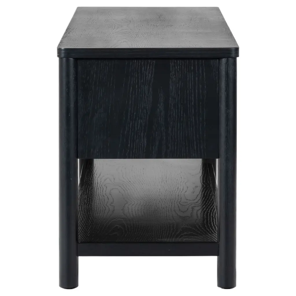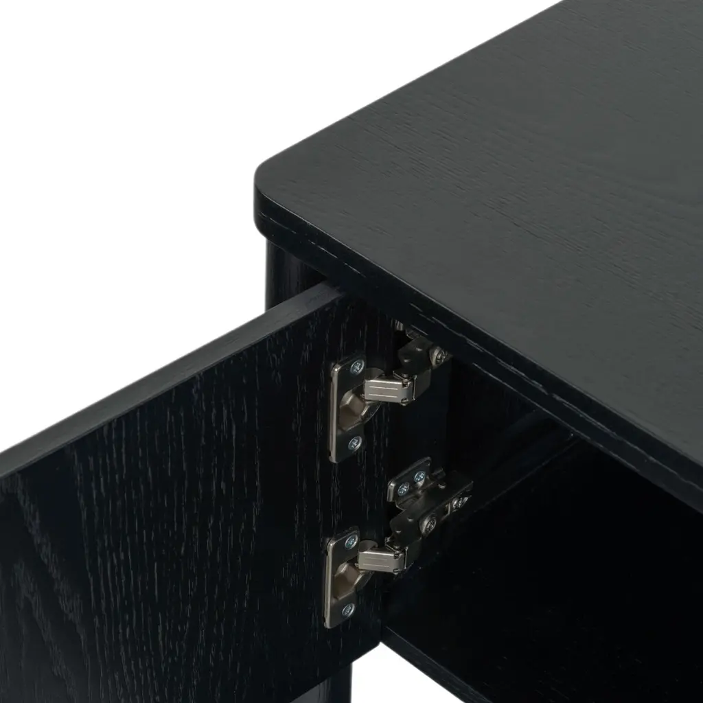 Introducing The Draven 3 Door Sideboard And TV Stand; a unique blend of style and function. This piece beautifully complements any interior decor and adds a touch of elegance to your living space. Crafted from a mix of solid rubber wood, oak veneer, and manufactured wood, it offers unmatched durability and stands strong against regular usage. The use of zinc for its metal elements ensures robust stability while enhancing its overall aesthetic appeal. With a three-door design, this stand offers ample storage space for all your media essentials. The Draven 3 Door Sideboard and TV Stand is not just a piece of furniture, but a statement of your refined taste. Upgrade your entertainment area with this perfect blend of style and durability. Accommodates TVs up to 75 inches.