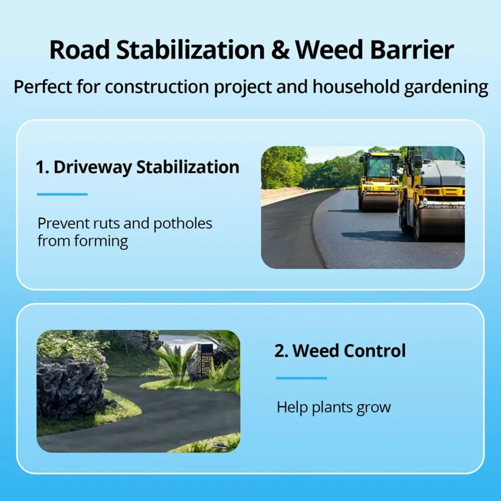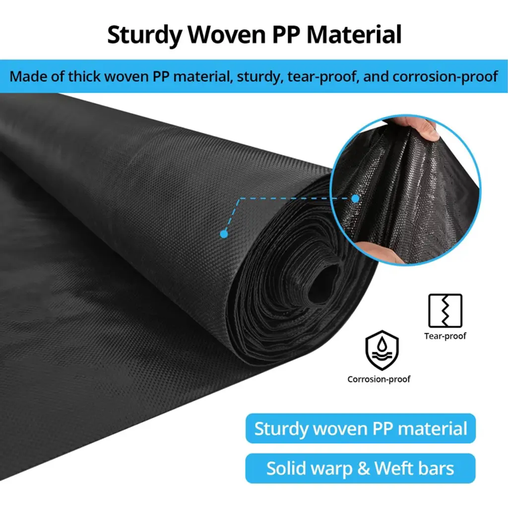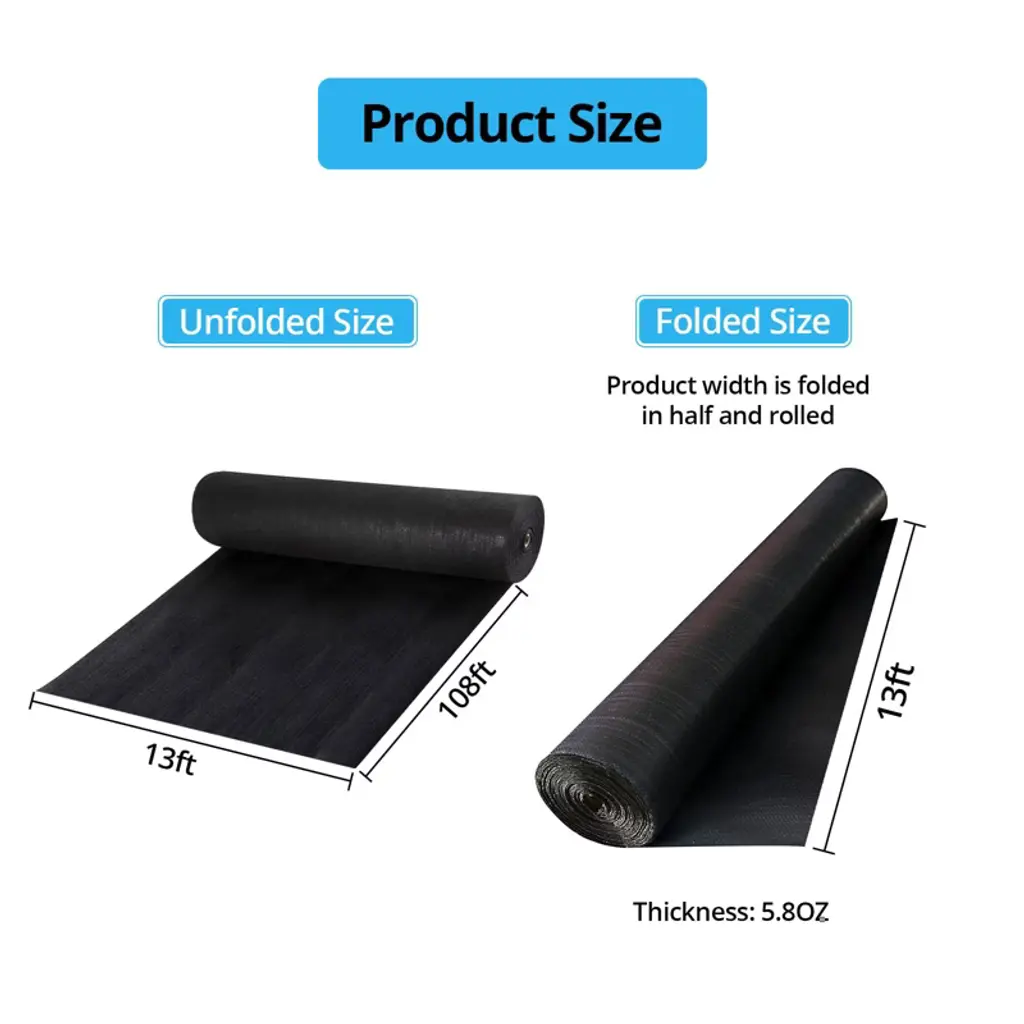 Engineer a stable, long-lasting foundation for your landscaping and construction projects with our professional-grade woven geotextile fabric. This versatile and robust ground cover is specifically designed for demanding applications, offering superior strength and performance for driveways, pathways, and commercial landscaping. Each roll provides extensive coverage, measuring 13 feet in width and 108 feet in length, for a total of 1,404 square feet of reliable protection.Key Features:Exceptional Durability and Tensile StrengthCrafted from high-quality, woven polypropylene materials, this fabric is built to endure the most challenging conditions. It boasts exceptional tear resistance and high tensile strength, enabling it to withstand heavy loads from gravel, stones, and vehicle traffic without compromising its integrity. This makes it an ideal, long-term solution for stabilizing driveways and high-traffic areas.Effective Weed Control with Optimal Soil HealthCreate a maintenance-free environment by effectively suppressing weed growth. The tightly woven structure acts as a physical barrier that blocks sunlight, preventing weeds from germinating and thriving. At the same time, the fabric's permeable design allows essential air, water, and nutrients to reach the soil beneath, promoting a healthy ecosystem and preventing ground compaction.Superior Permeability for Proper DrainagePrevent water pooling and erosion with its highly permeable design. The fabric facilitates excellent water flow, allowing rainwater to drain through efficiently instead of accumulating on the surface. This feature is crucial for ensuring proper drainage in French drain systems, underneath patios and walkways, and in garden beds, protecting your structures from water damage.Versatile for Commercial and Residential ApplicationsThis multi-purpose geotextile fabric is the perfect choice for a wide array of projects. Use it for road stabilization, erosion control on slopes, under retaining walls, in gravel driveways, and as a stable base for patios and stone paths. Its robustness also makes it suitable for agricultural and industrial uses, such as in farmyards and under heavy equipment.Available Options for Your Project RequirementsTo meet the specific demands of various applications, this heavyweight landscape fabric is available in multiple sizes, including a more manageable 3ft x 50ft roll for smaller residential projects and a robust 16.5ft x 165ft roll for large-scale commercial work. While the standard and highly functional black is most common, it is also offered in a natural brown tone for a more discreet look in landscaped areas, ensuring you find the perfect fit for both your functional and aesthetic needs.