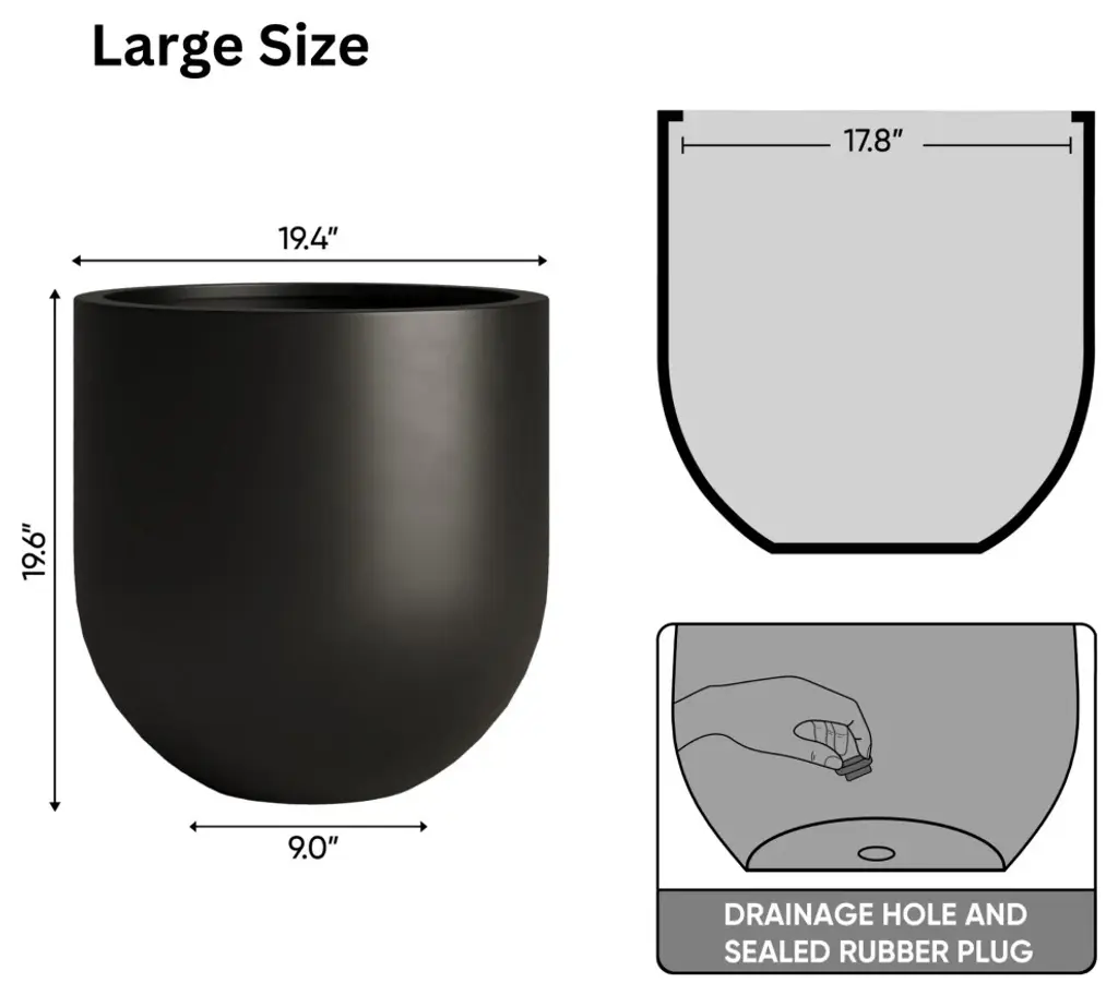 Elevate your space with the Mount Antero Bullet Planter''s blend of durability, style, and versatility. Embrace the sophistication and charm of the contemporary design that seamlessly fits into any space. Available in smaller sizes, this planter is perfectly suited for smaller spaces. Crafted from a lightweight fiberstone composite material, these modern planters offer a blend of durability and style, making them ideal for freezing temperatures and high-traffic areas.•DURABLE & LIGHTWEIGHT: This stylish planter is meticulously crafted from a lightweight fiberstone composite material, combining fiberglass and natural crushed stone powder for enhanced strength and durability. Despite its robust construction, this planter remains lighter than conventional stone planters, ensuring both longevity and ease of handling.•WEATHER RESISTANT: Designed to withstand the harshest elements, fiberstone planters are resistant to frost, UV rays, and cracking, making them a versatile choice for indoor and outdoor environments. Equipped with a .6-inch drainage hole and a rubber plug, these planters facilitate proper watering practices and create optimal growing conditions for your plants.•STYLISH DESIGN: The sleek bullet planter is available in a range of colors and sizes, catering to diverse preferences and space requirements. Boasting a contemporary industrial style, this planter introduces a touch of modern elegance into your living space, elevating its aesthetic appeal and creating a stylish focal point.•SMALL PLANTER MEASURES: 12" height x 12" diameter (pot opening 10.2")•MEDIUM PLANTER MEASURES: 16" height x 16" diameter (pot opening 13.3") •LARGE PLANTER MEASURES: 20" height x 20" diameter (pot opening 16.9")•BUY WITH CONFIDENCE: Our customers'' satisfaction means everything to us. We take pride in our product"™s superior quality and craftsmanship. If for any reason you are at all unsatisfied with your purchase, simply contact us. We are so confident in our products that we offer a 30-day limited warranty (see item warranty information for details).•Made In Vietnam
