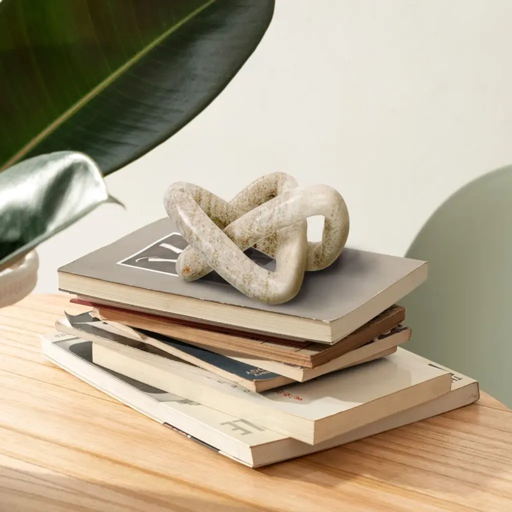 Say hello to chic. This marble link knot is the perfect on-trend addition to your modern home. Crafted with naturally varying marble, it showcases a unique knotted chain silhouette that will catch any eye. Whether it graces your shelves, console, or coffee table, this piece brings a boho vibe to any space. Each piece is uniquely crafted, ensuring your decor is as individual as you. Plus, it's a conversation starter.