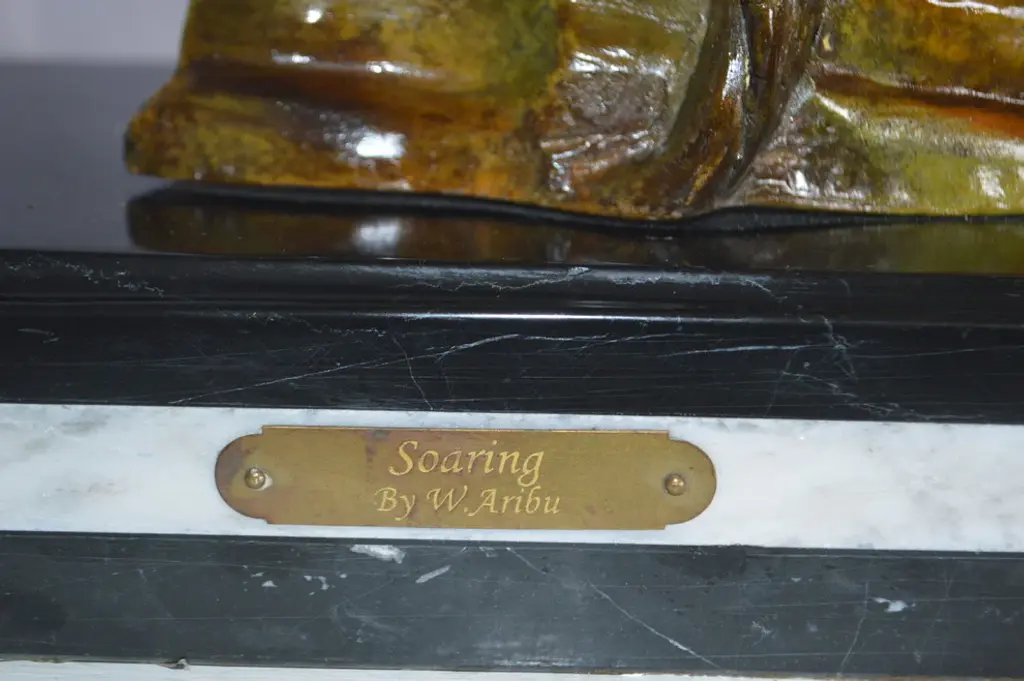 Eagle Soaring Bronze Statue By W Aribu - Size: 35"l X 27"w X 38"h.