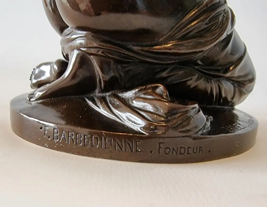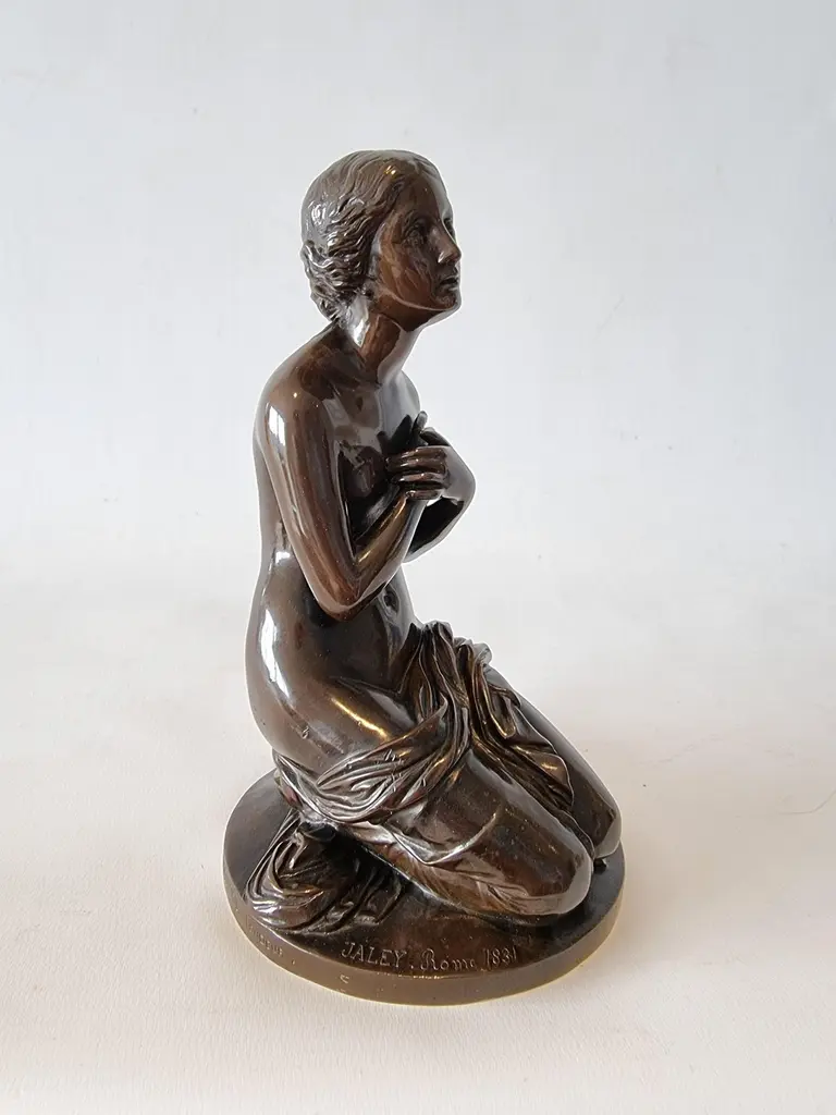 A fine 19th century patinated bronze sculptured titled 'La Priere' or 'the prayer' signed for Jean-Louis Nicholas Jaley, and dated 1831. It is also fully signed by the famous fondeur barbedienne on the moulding of the base " F. Barbedienne, Fondeur" He was a French sculpture, and was the pupil of his father Louis Jaley and Pierre Cartellier. A very finel bronze.