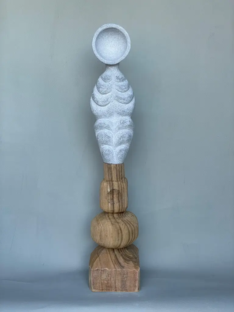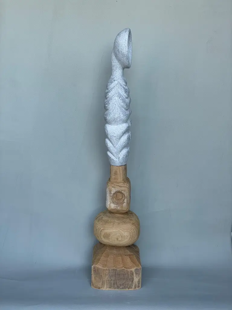 Echo on wood hand carved marble sculpture by tom von kaenel. Dimensions: d 15 x w 15 x h 76 cm. Materials: marble, wood tom von kaenel, sculptor and painter, was born in switzerland in 1961. Already in his early childhood he was deeply devoted to art. His desire to bring beauty to the world is tom von kaenel’s inspiration, drive and source for the creation of his works. Already during his training as a technical draughtsman and later as a teacher of pictorial design, he devoted himself to painting and three-dimensional work. Tom von kaenel has exhibited his work in various solo and group exhibitions. For seven years he was represented by galerie ute barth in zurich. Today tom von kaenel lives and works on the island of naxos. Everything in his environment inspires and shapes his work. He creates objects and sculptures out of naxian marble in craftsmanship liveliness and timeless beauty. This piece is attributed to the mentioned designer/maker. It has no attribution mark and no official proof of authenticity, however it is well documented in design history. I take full responsibility for any authenticity issues arising from misattribution