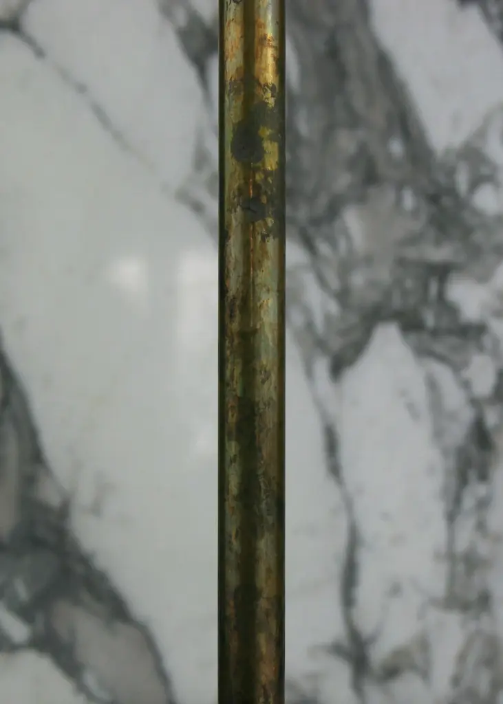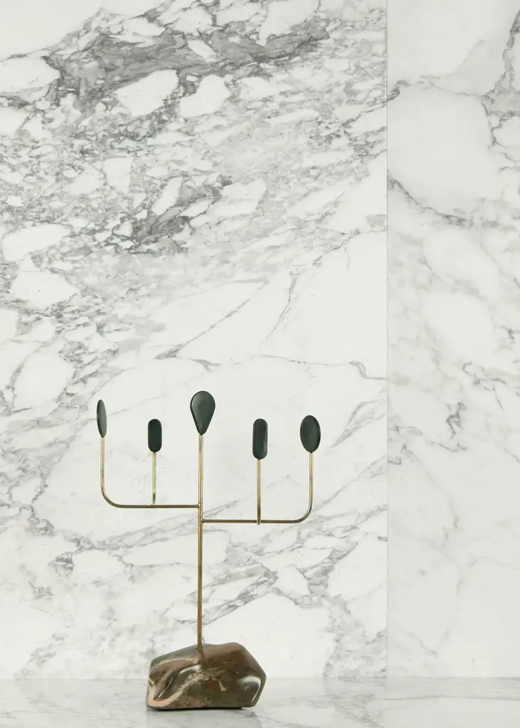 Edouard Sankowski individually selects the marble blocks he employs. They have been extracted from French quarries that have been active for over 1000 years. Versailles and the Sacré-Cœur are among the esteemed structures built thanks to these "Royal Quarries". These pieces are made with in-house Dyed Leather on Brass Structure and Marble Base. This Marble Base Sculpture is not anchored by default. Please specify if you would like the Base to be permanently affixed before shipping in our "Customization Options". Each piece in the series is unique, sculpted by hand and presents unique traits due to the nature of the materials employed and the work expressed upon them, varying from piece to piece in shape, color and weight. Items will differ from the image. The image is provided solely as a visual aid of what to expect from made-to-order items. All pieces are signed and hand-made in France. Please get in touch for possible variations: 1 - Brass Finish: - Polished Natural Brass - Polished Silvered Brass - Weathered Brass - Streaked Natural Brass - Streaked Silvered Brass - Blackened Brass 2 - Leaves: Please Specify Color(s) 3 - Base / Leg Attachment: - Default (un-tethered, can spin in the base) - Attached (fully anchored, cannot spin) Further customization may be possible. Signed by Maker